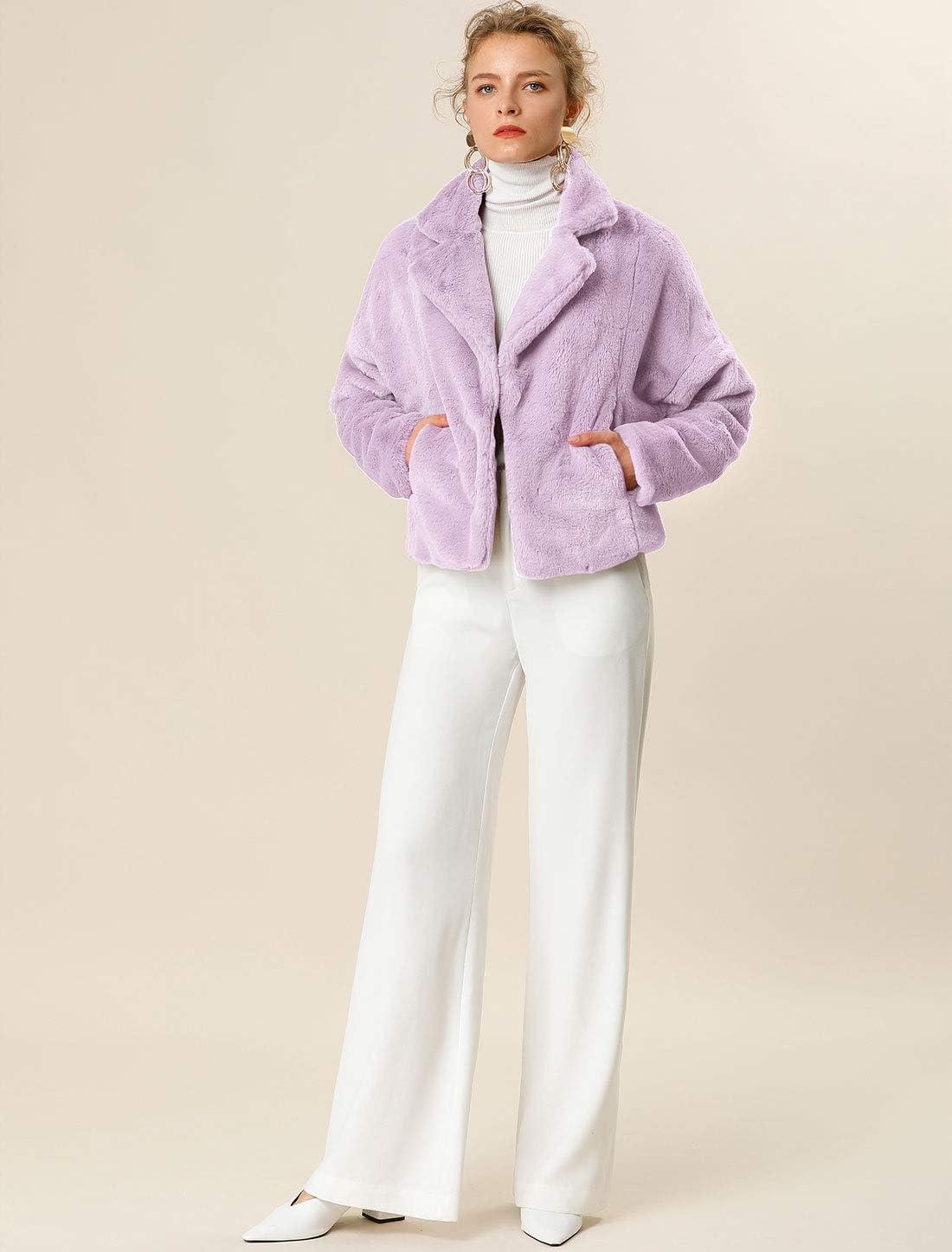 Allegra K Women's Winter Wedding Faux Fur Bolero Jacket Loose Formal Faux Fur Coat(Taro Purple)