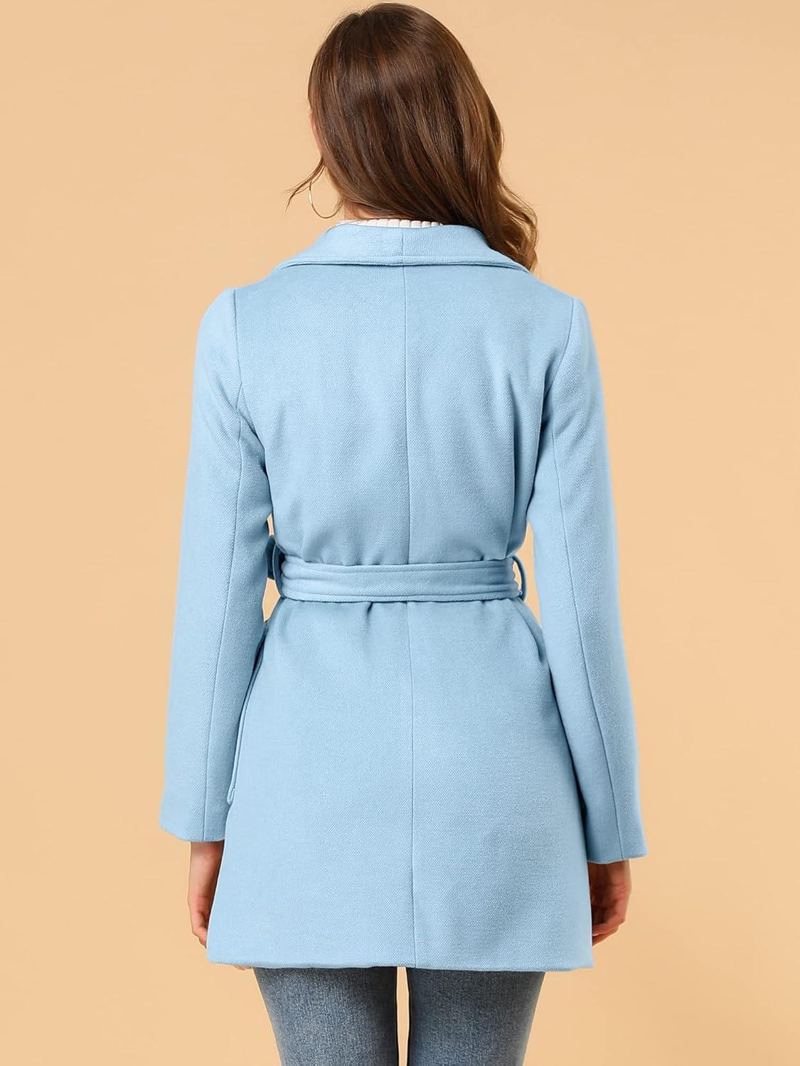 Allegra K Women’s Winter Wrap Coat Turndwon Collar Long Sleeve Tie Belt Coat with Pockets(Blue)