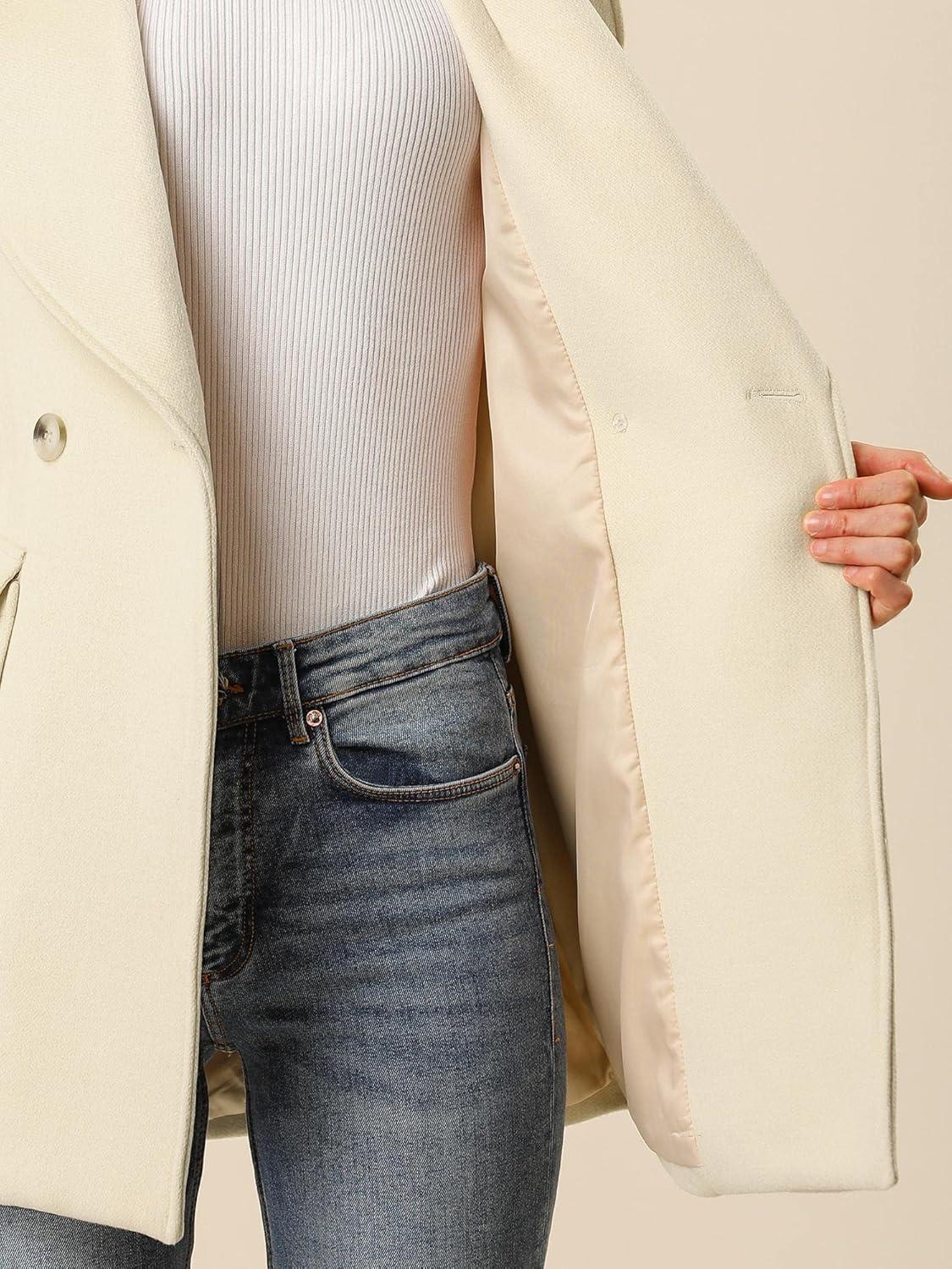 Allegra K Women's Winter Wrap Coat Turndwon Collar Long Sleeve Tie Belt Coat with Pockets(Cream White)
