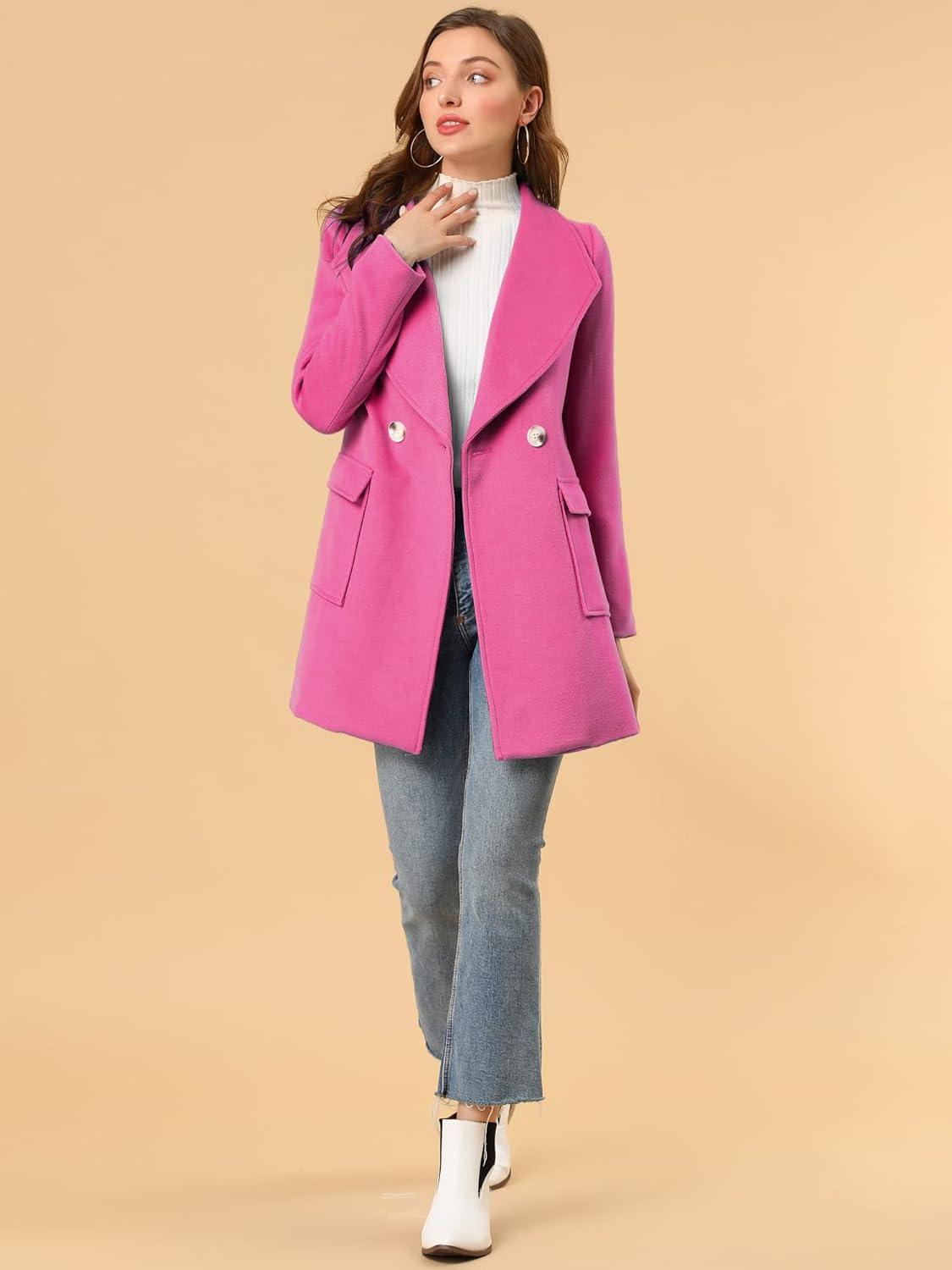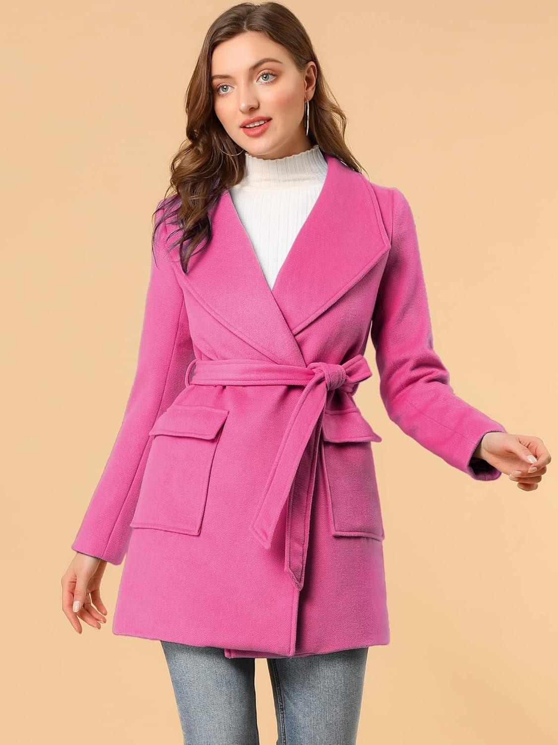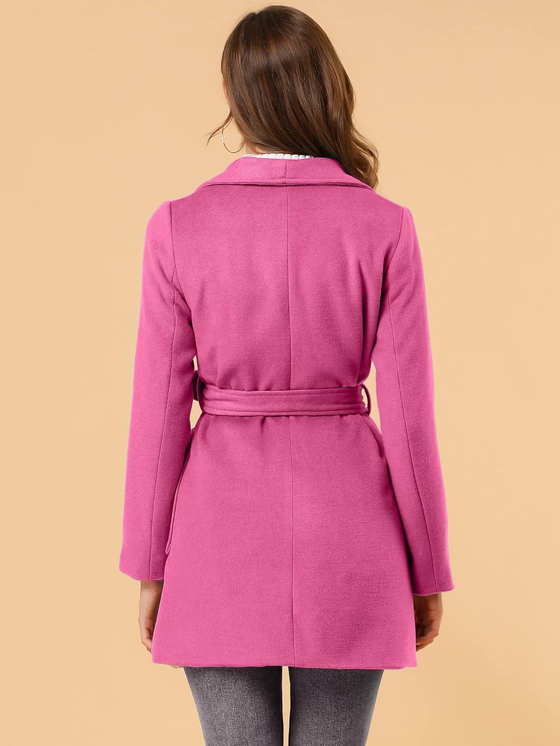 Allegra K Women’s Winter Wrap Coat Turndwon Collar Long Sleeve Tie Belt Coat with Pockets(Fuchsia)