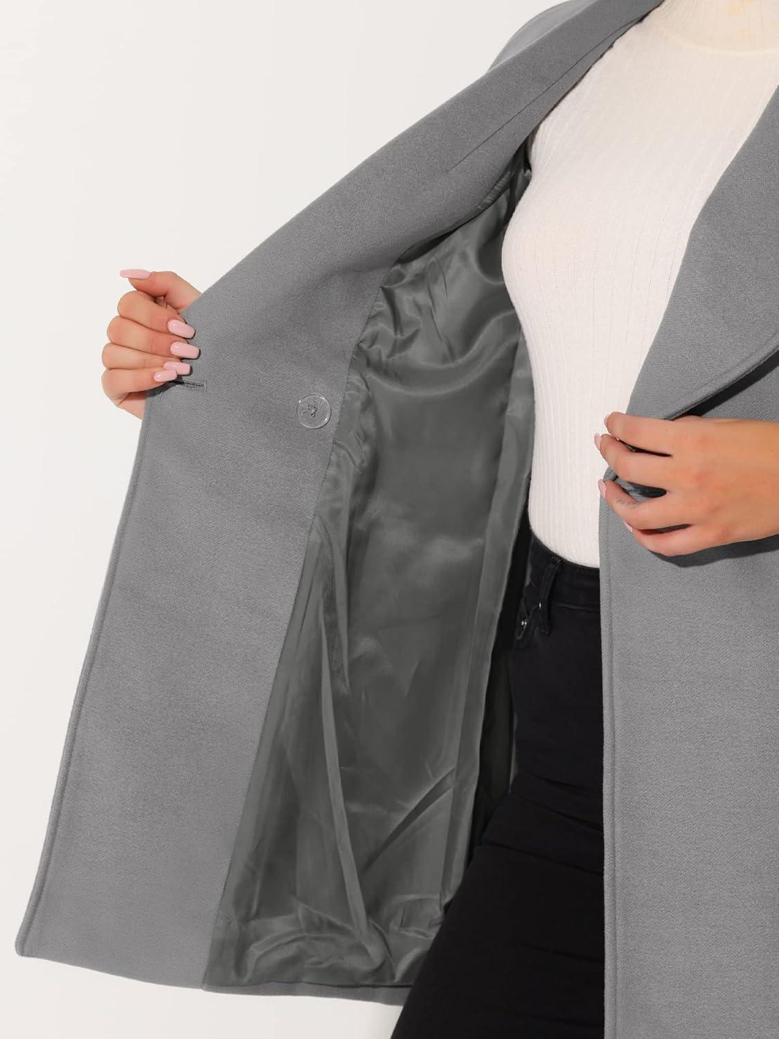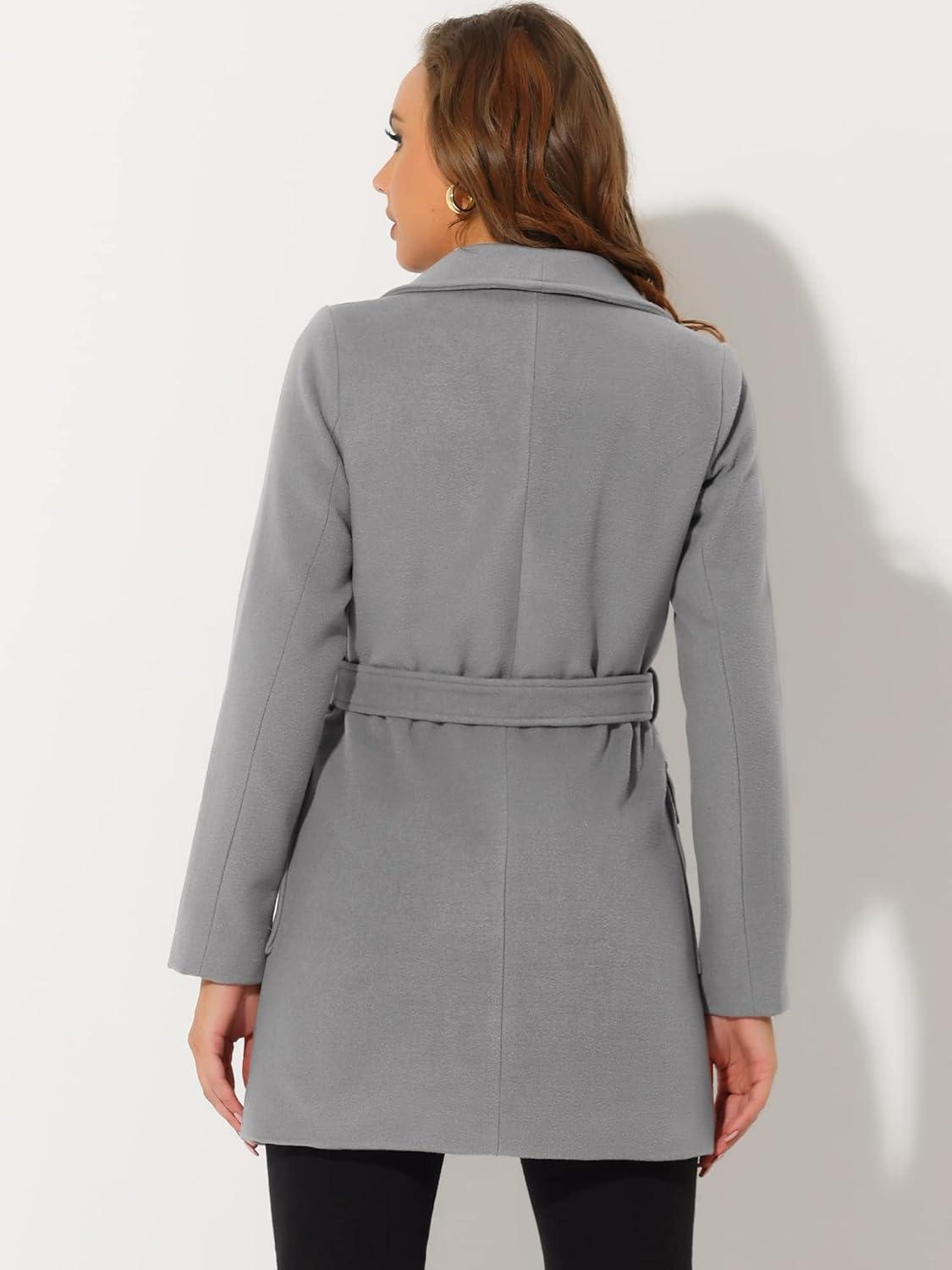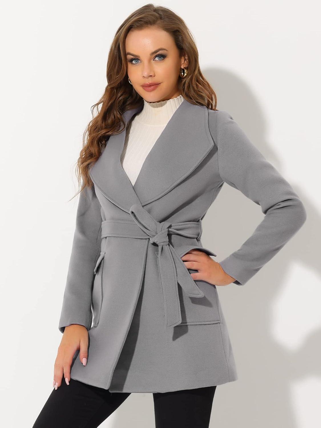 Allegra K Women’s Winter Wrap Coat Turndwon Collar Long Sleeve Tie Belt Coat with Pockets(Gray)