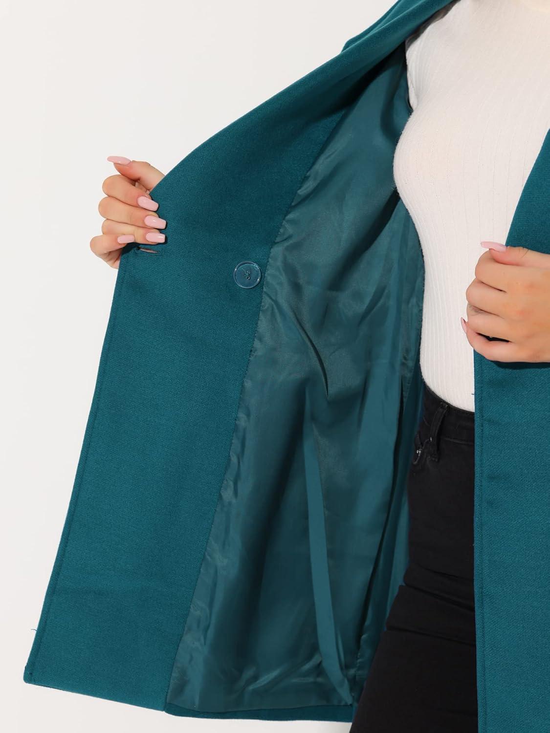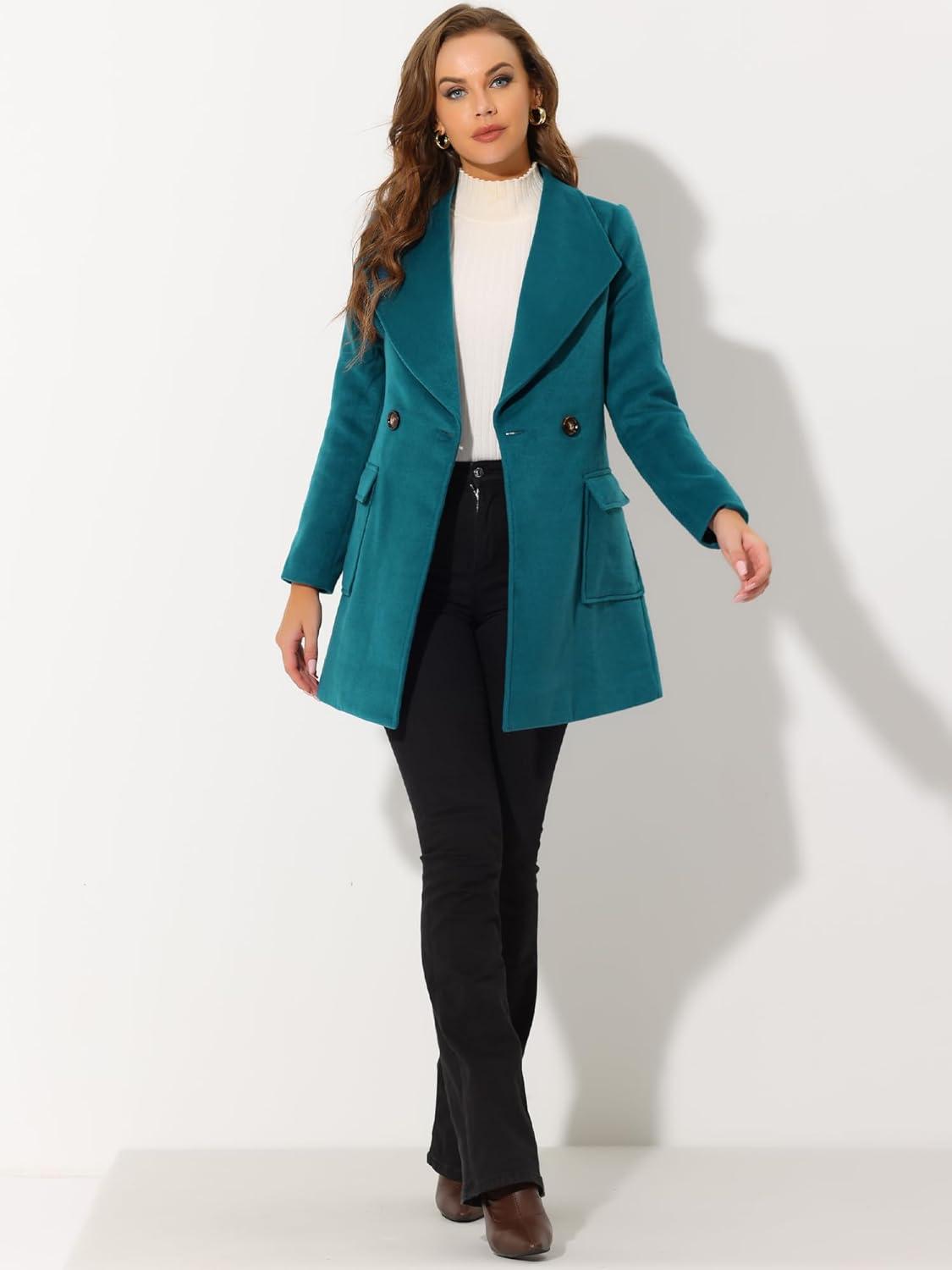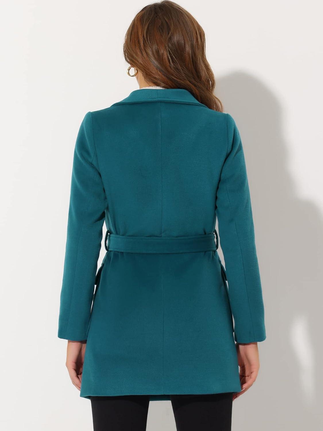 Allegra K Women’s Winter Wrap Coat Turndwon Collar Long Sleeve Tie Belt Coat with Pockets(Peacock Blue)
