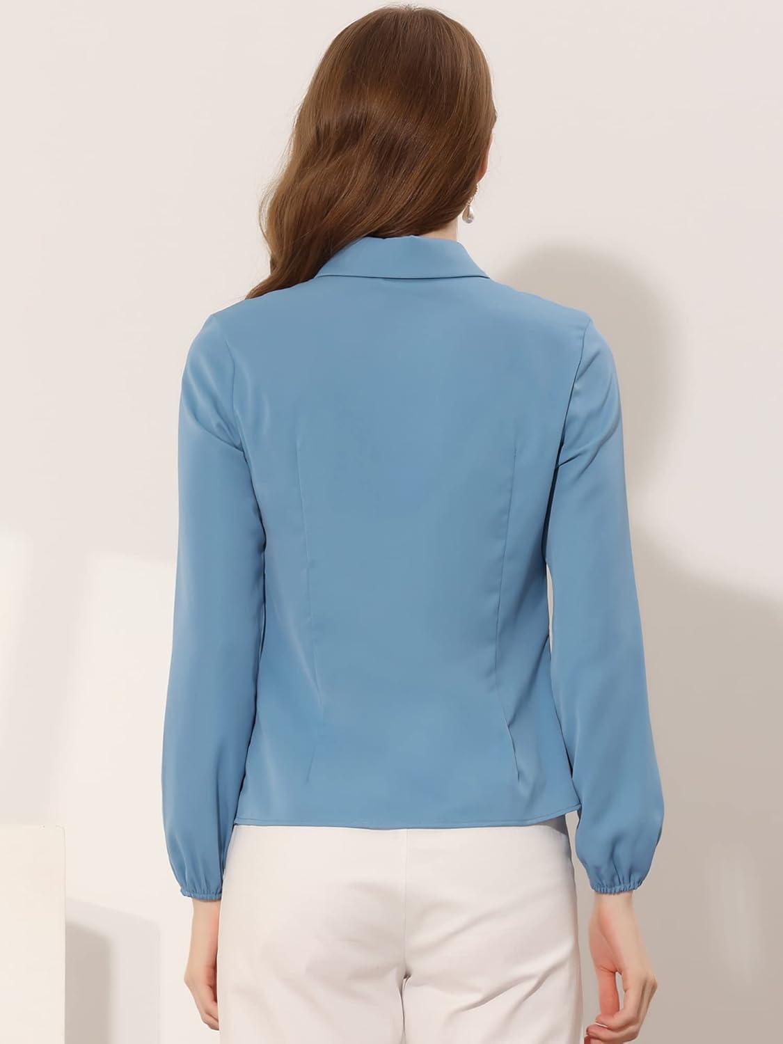 Allegra K Women's Work Button Down Shirt Lace Trim Business Casual Long Sleeve Blouse Top(Gray Blue)