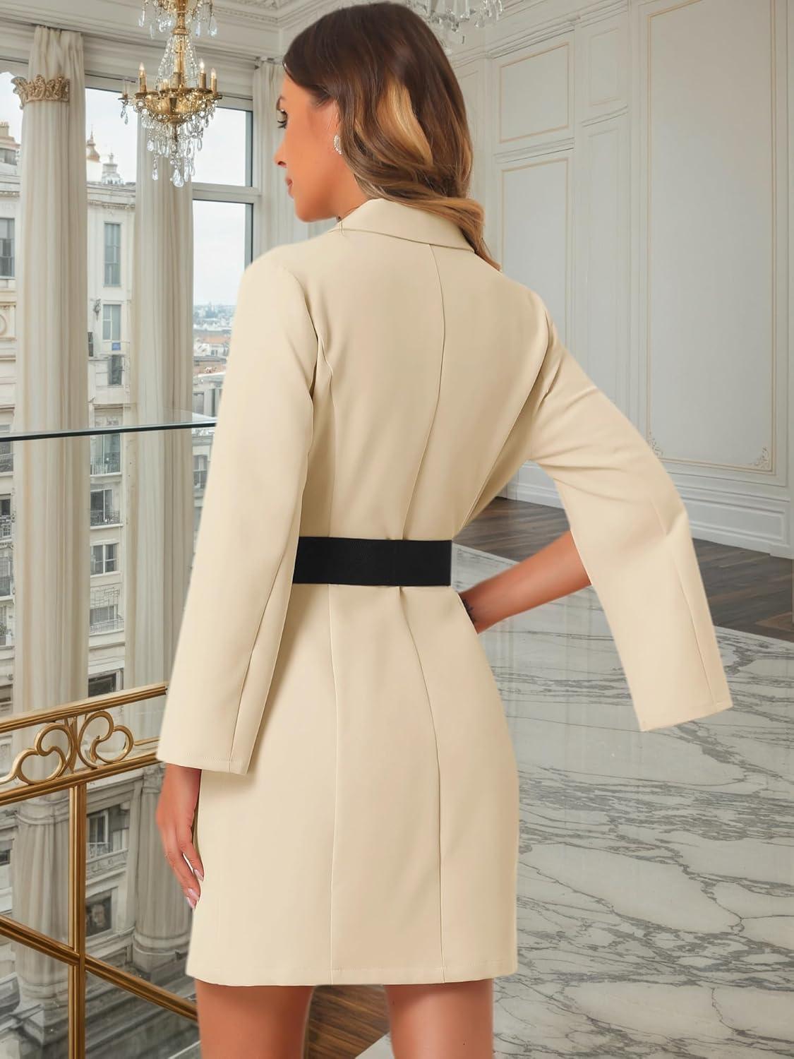Allegra K Womens Work Dresses Slit Sleeve 2025 Fall Belted Double Breasted Business Blazer Dress(Beige)