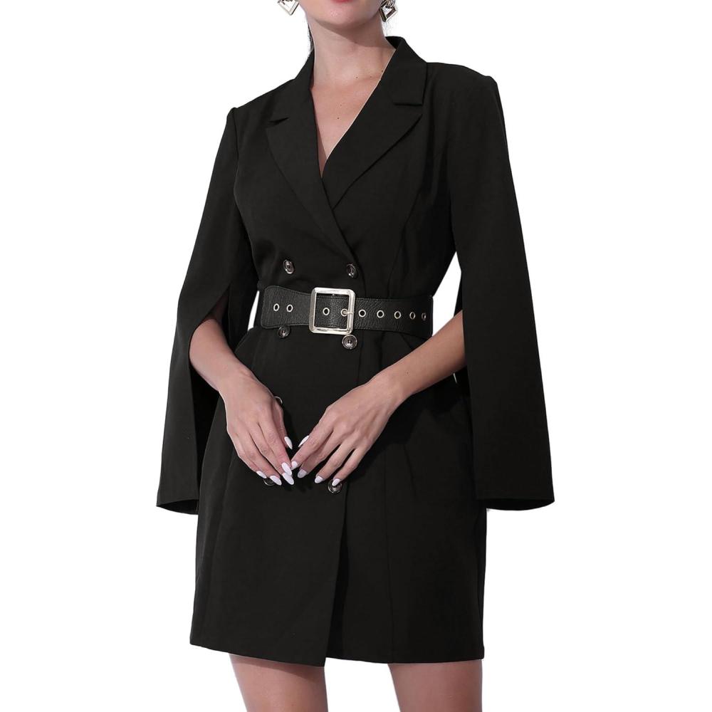 Allegra K Womens Work Dresses Slit Sleeve 2025 Fall Belted Double Breasted Business Blazer Dress(Black)