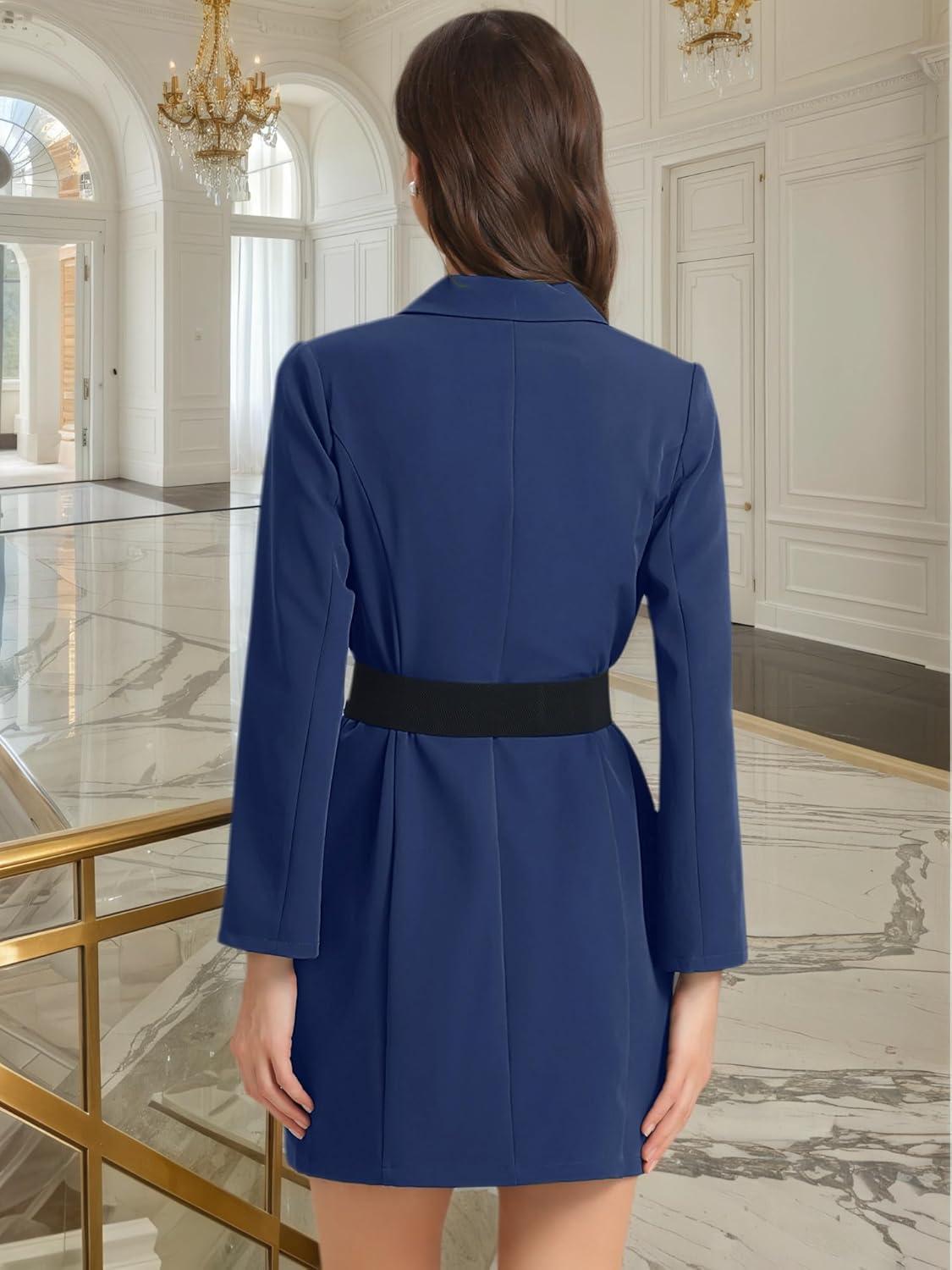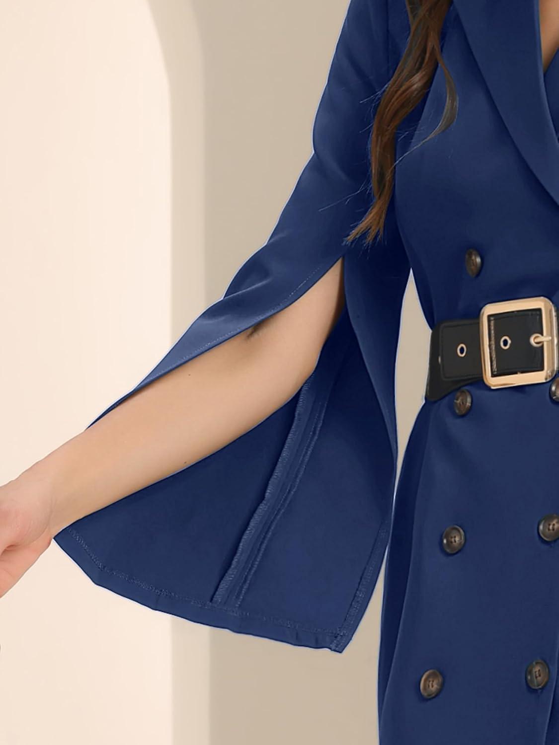 Allegra K Womens Work Dresses Slit Sleeve 2025 Fall Belted Double Breasted Business Blazer Dress(Dark Blue)
