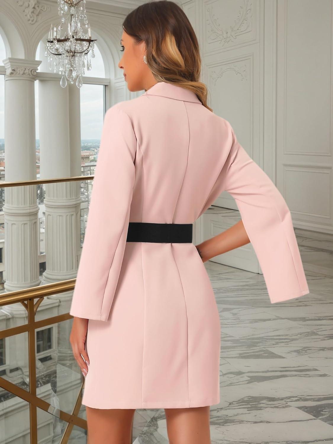Allegra K Womens Work Dresses Slit Sleeve 2025 Fall Belted Double Breasted Business Blazer Dress(Pink)