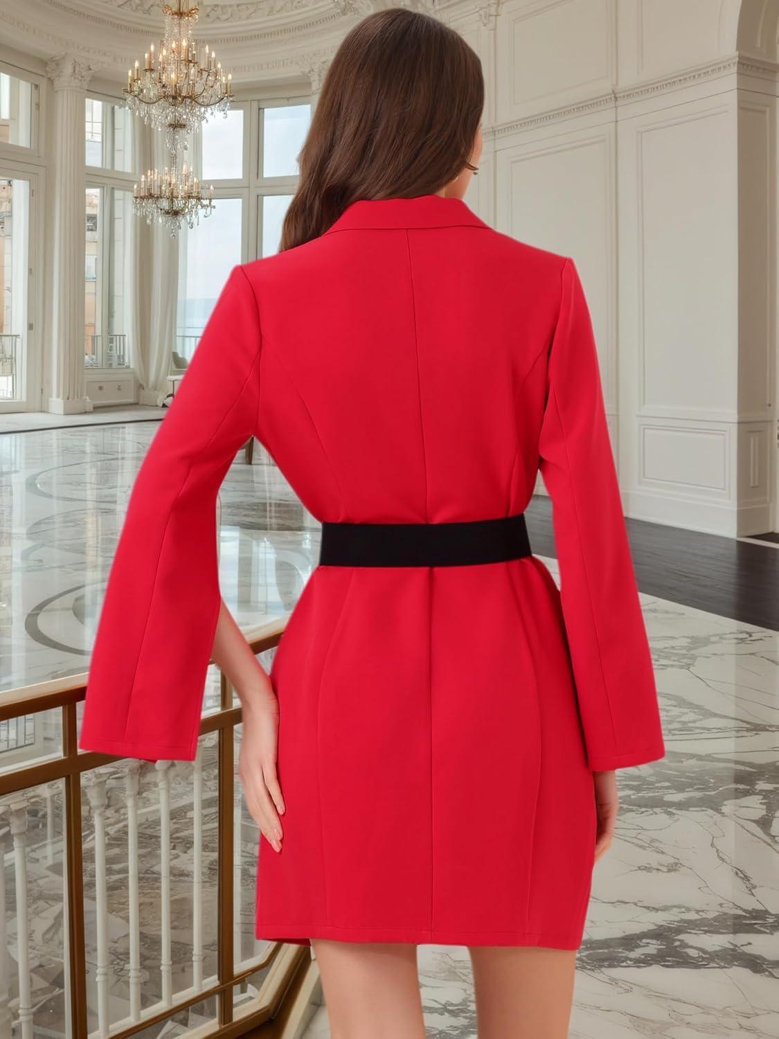 Allegra K Womens Work Dresses Slit Sleeve 2025 Fall Belted Double Breasted Business Blazer Dress(Red)