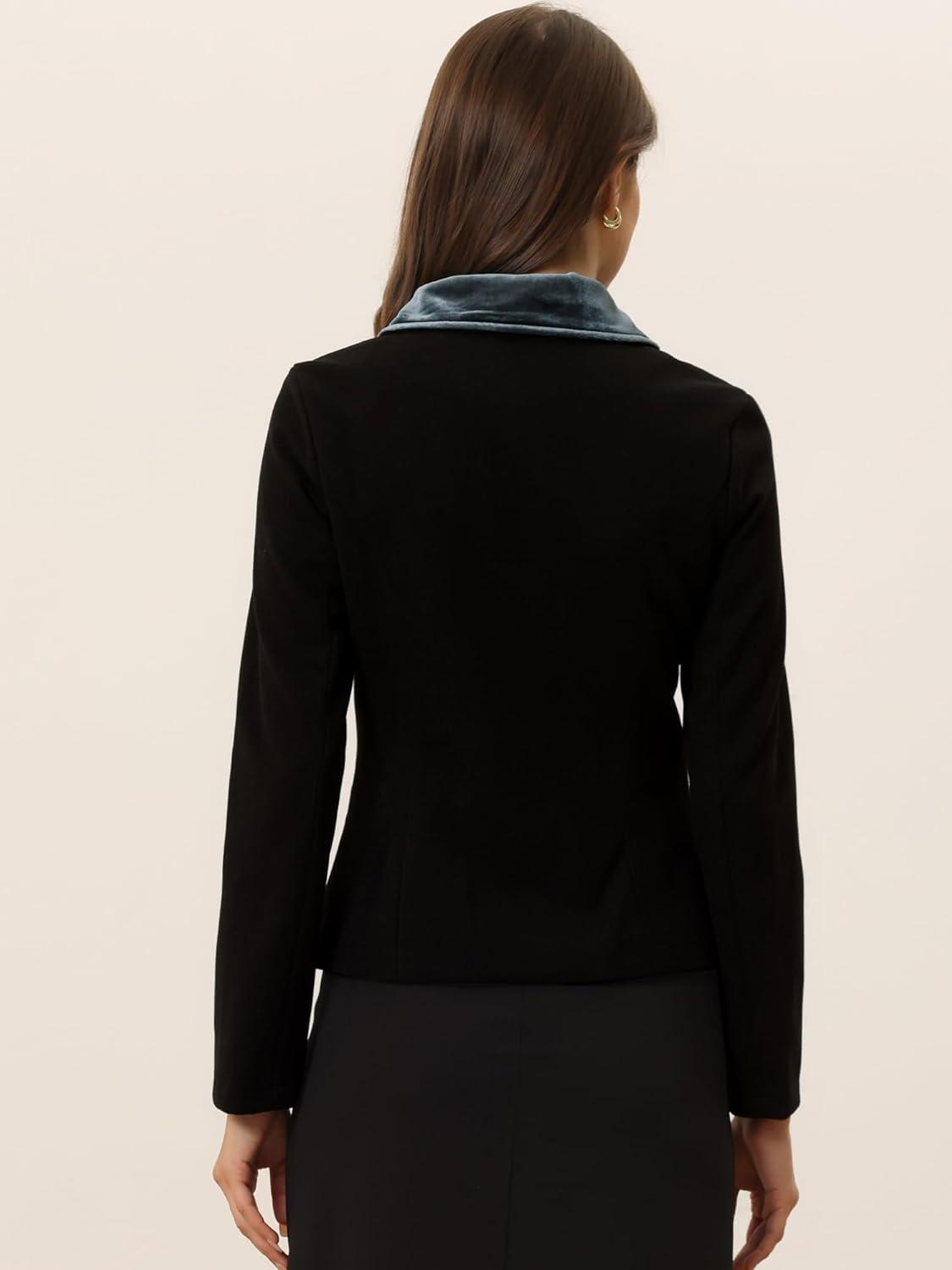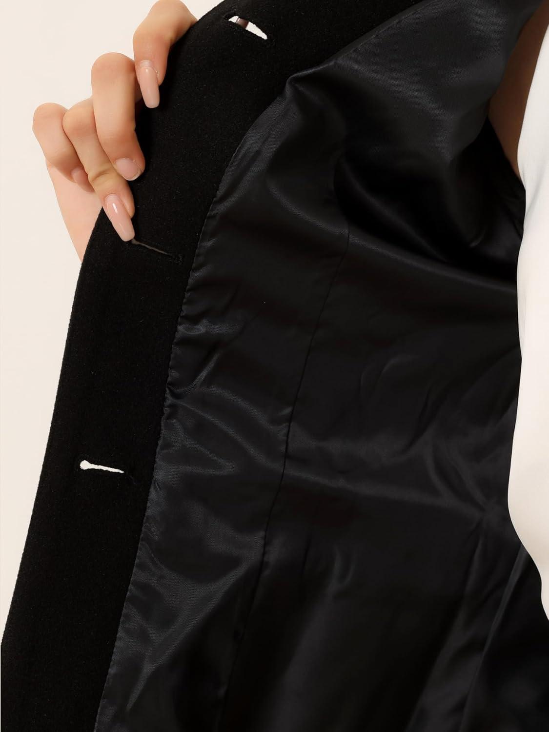 Allegra K Women's Work Office Winter Coat Turndown Collar Single Breasted Outerwear Peacoat(Black)