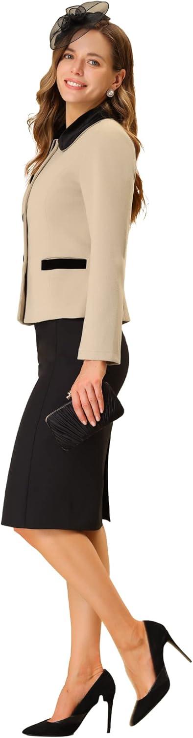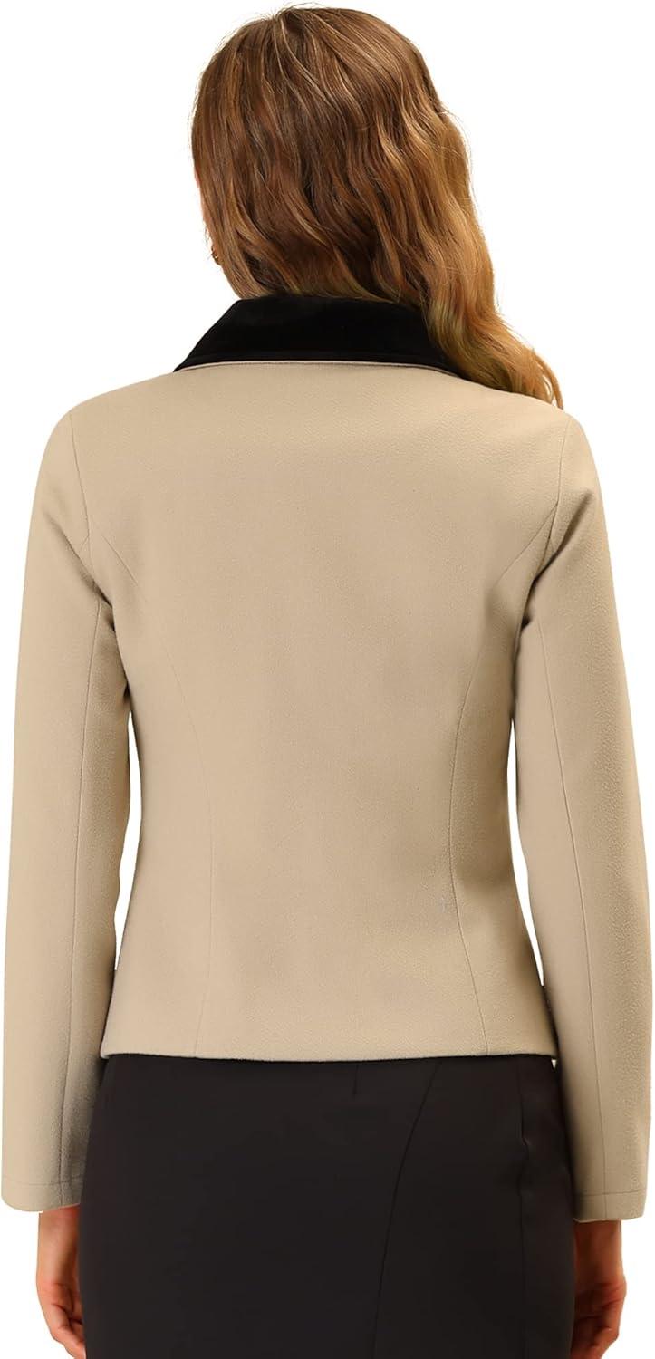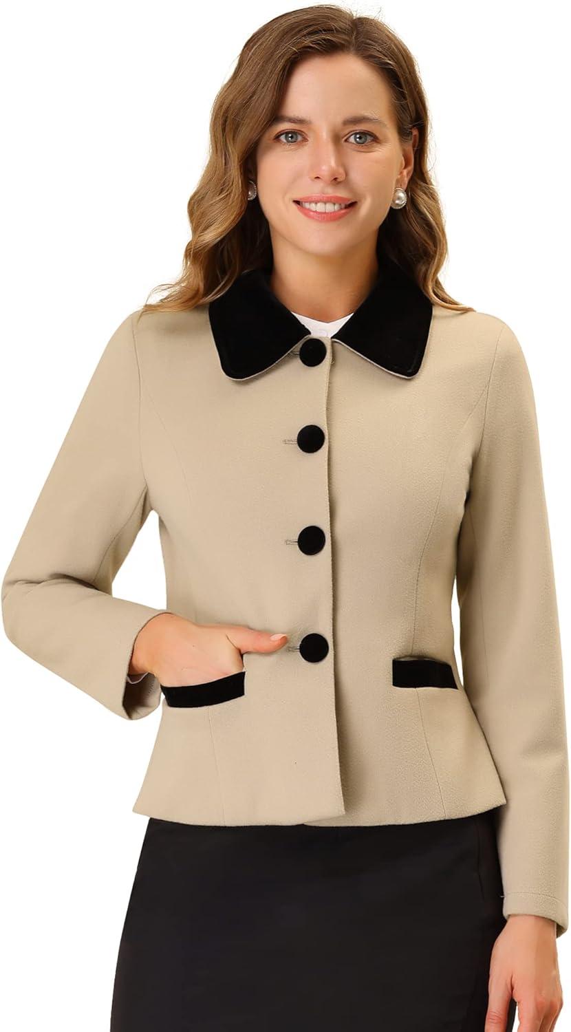 imageAllegra K Womens Work Office Winter Coat Turndown Collar Single Breasted Outerwear PeacoatCream White
