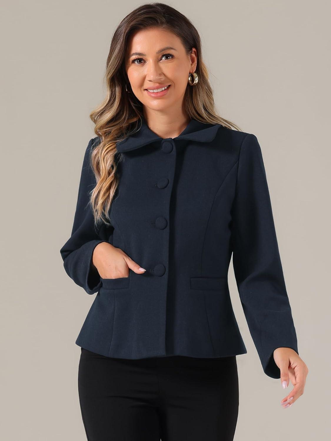 Allegra K Women's Work Office Winter Coat Turndown Collar Single Breasted Outerwear Peacoat(Dark Blue)
