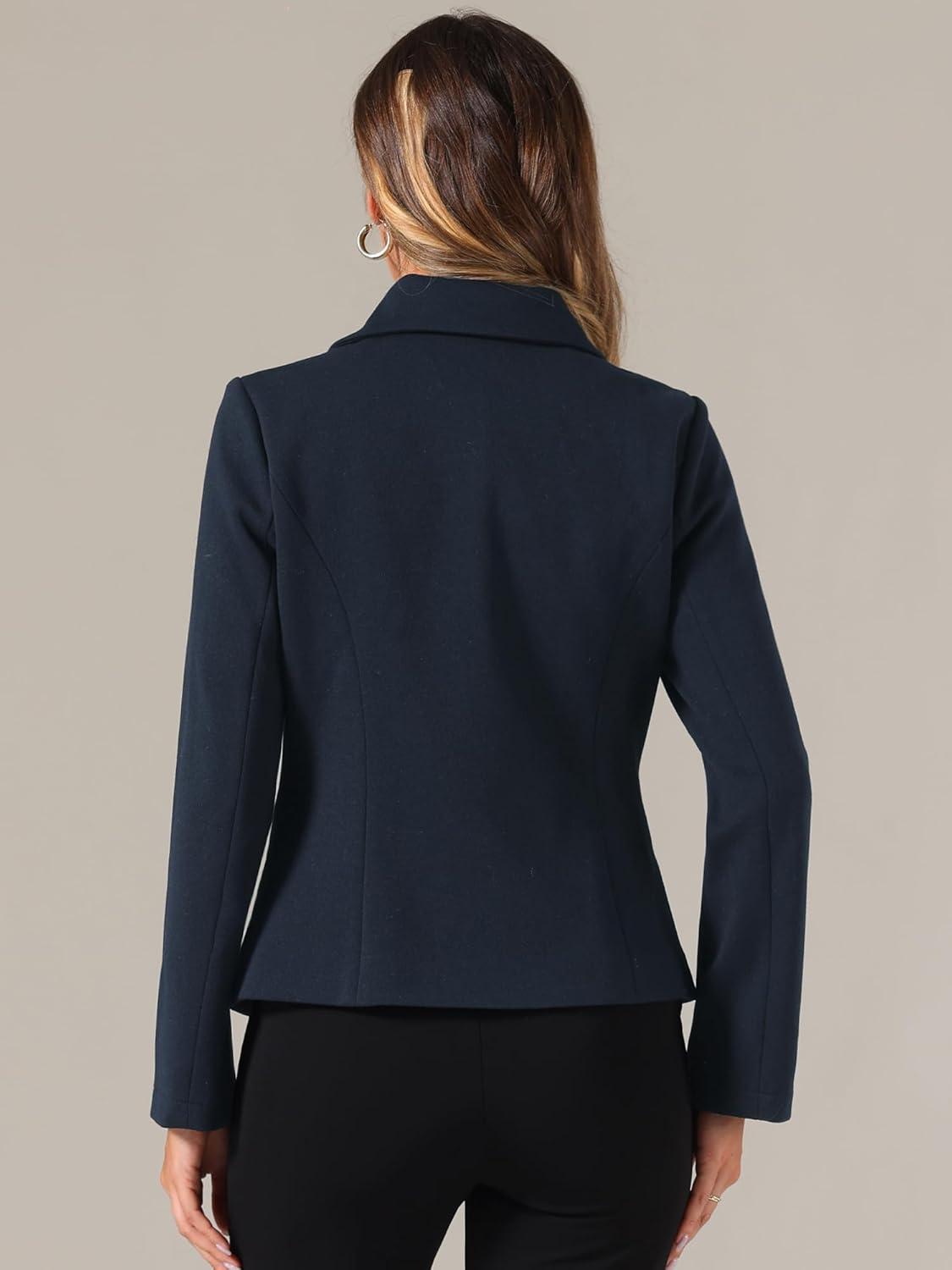 Allegra K Women’s Work Office Winter Coat Turndown Collar Single Breasted Outerwear Peacoat(Dark Blue)