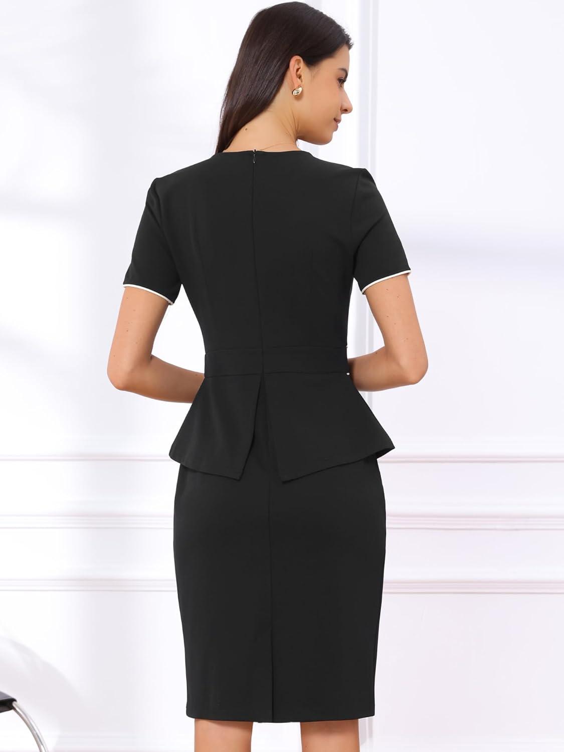 Allegra K Women's Work Sheath Dresses Crewneck Pencil Business Peplum Dress(Black)
