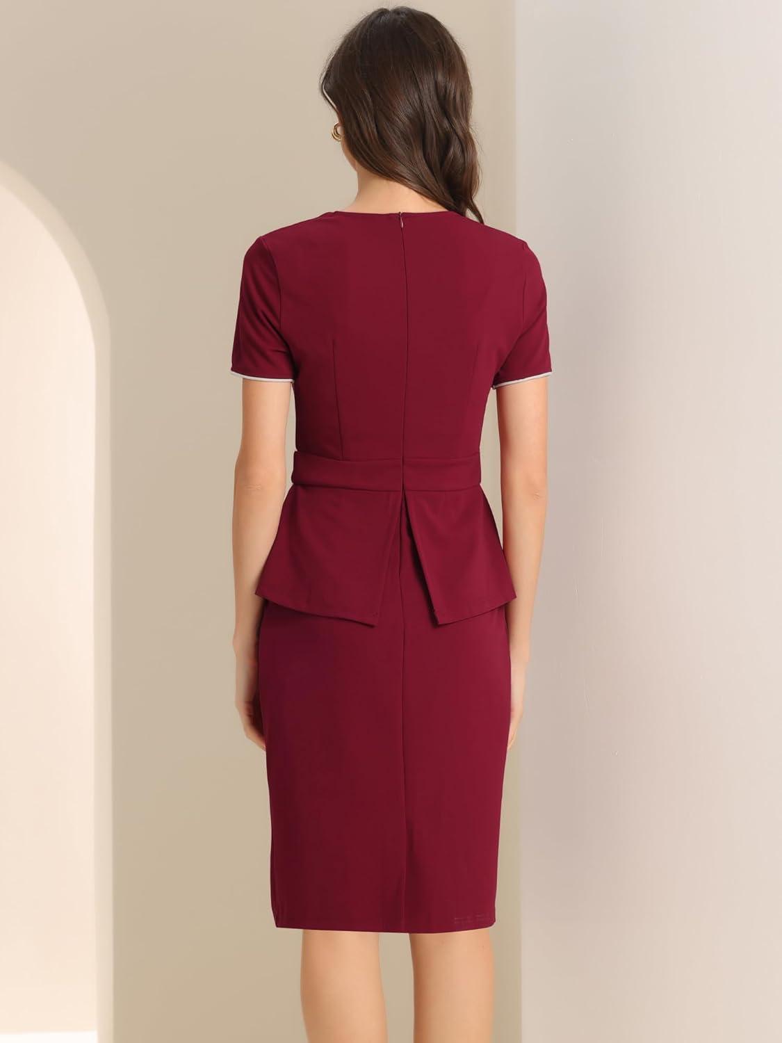imageAllegra K Womens Work Sheath Dresses Crewneck Pencil Business Peplum DressBurgundy