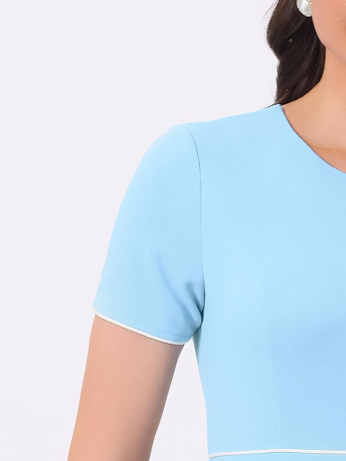 Allegra K Women’s Work Sheath Dresses Crewneck Pencil Business Peplum Dress(Sky Blue)