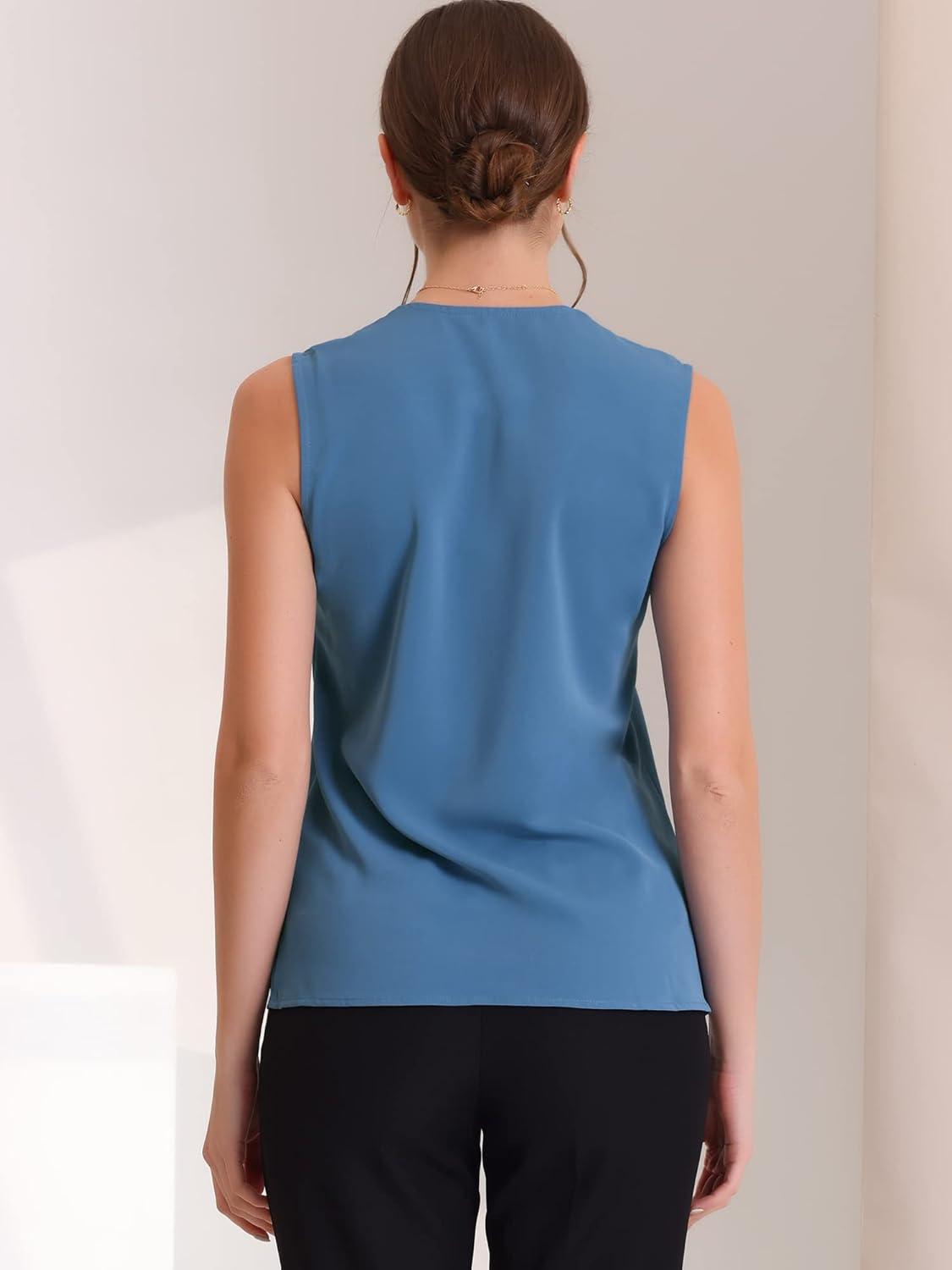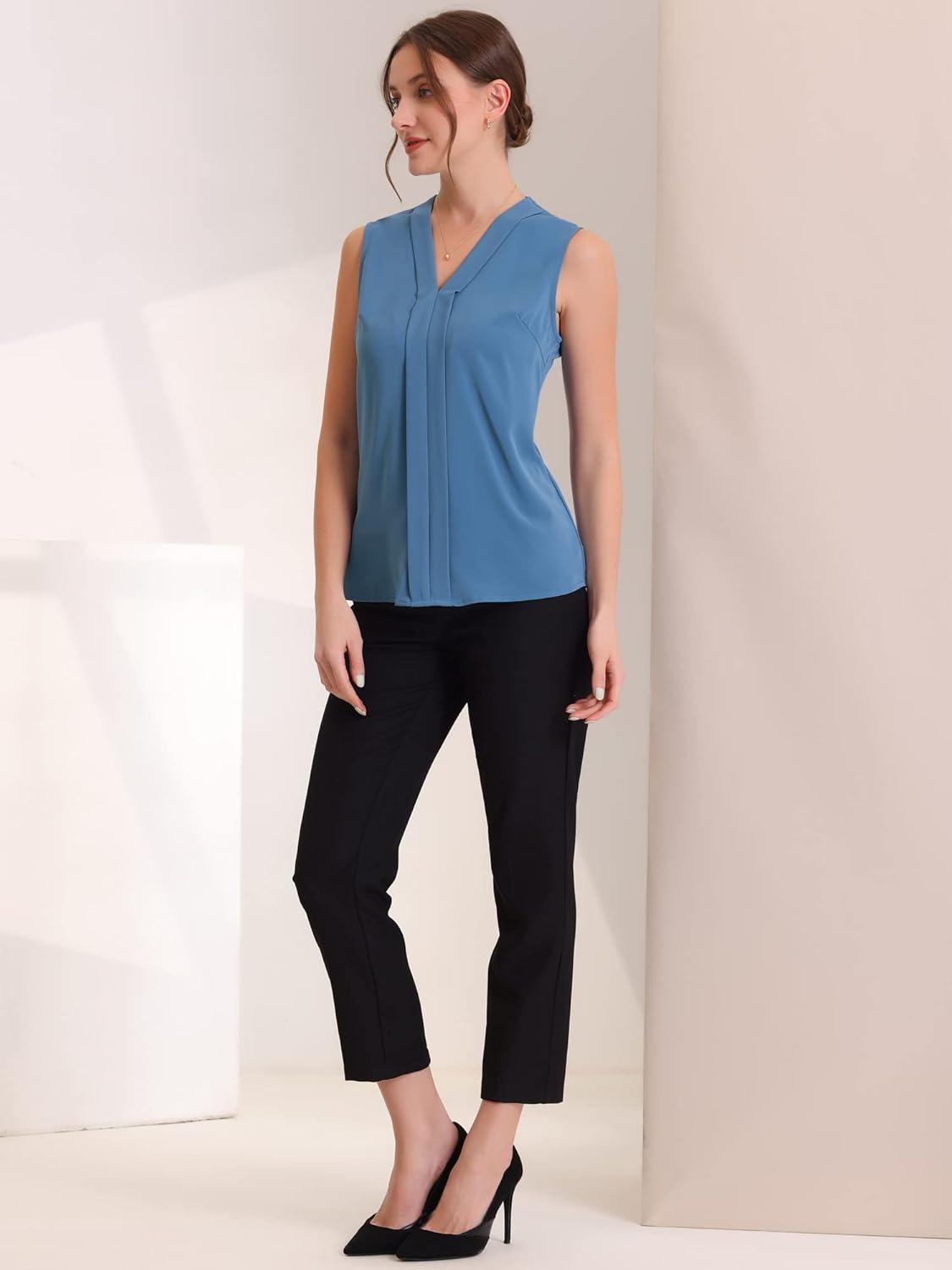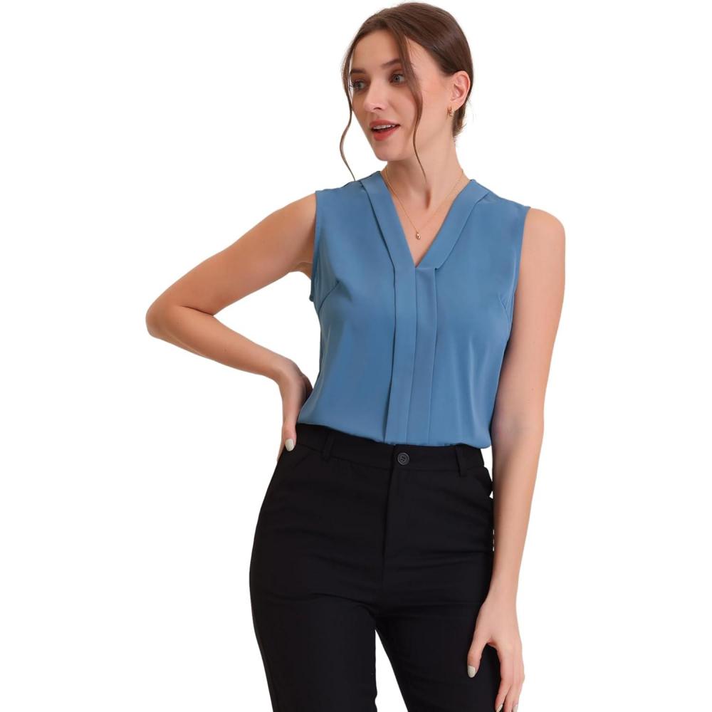 Allegra K Women’s Work Sleeveless Blouse Business Casual V Neck Tank Tops(Blue Gray)