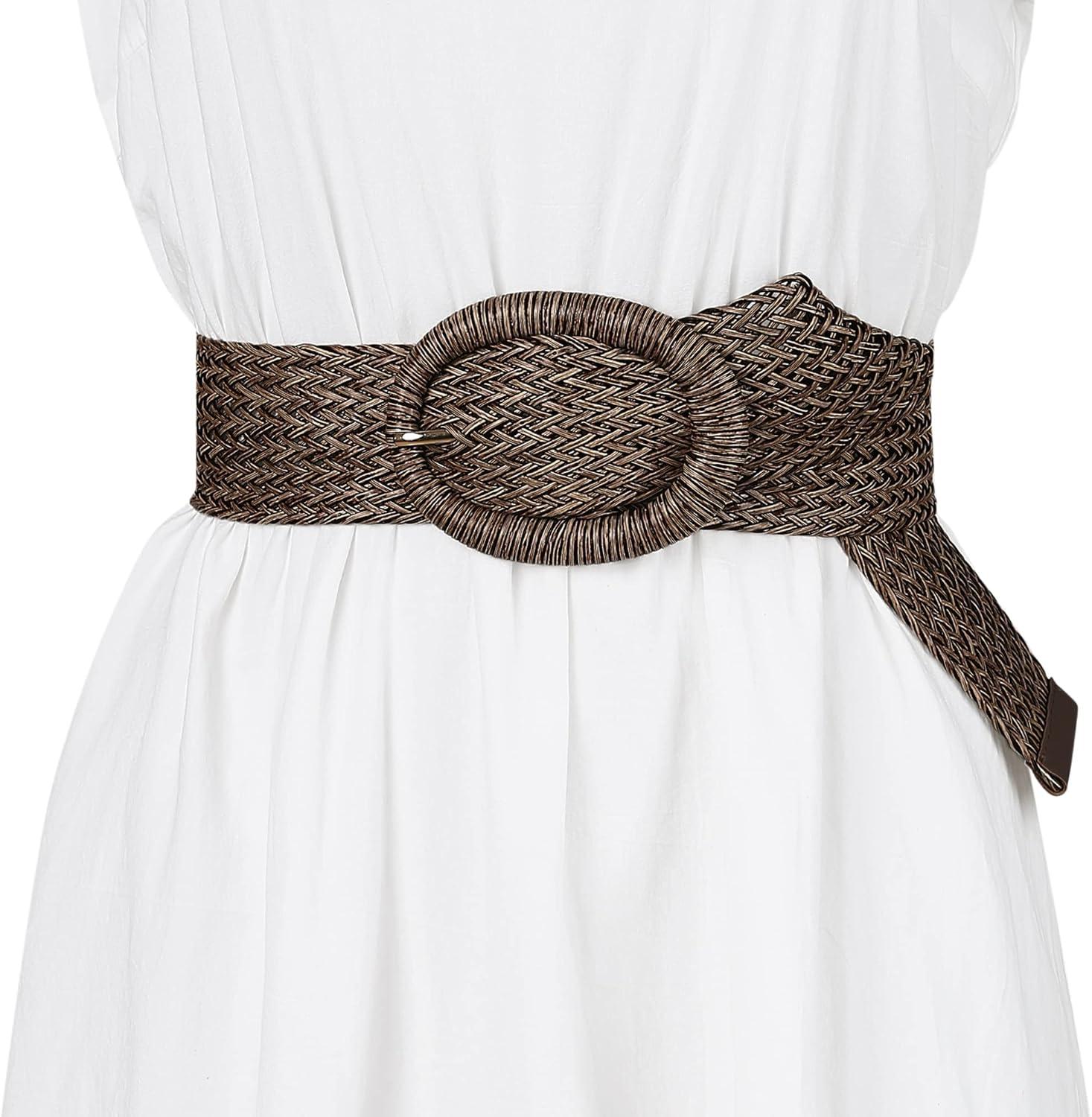 Allegra K Womens Woven Belts Wide Waist Belts for Dress Decor Adjustable(Brown)