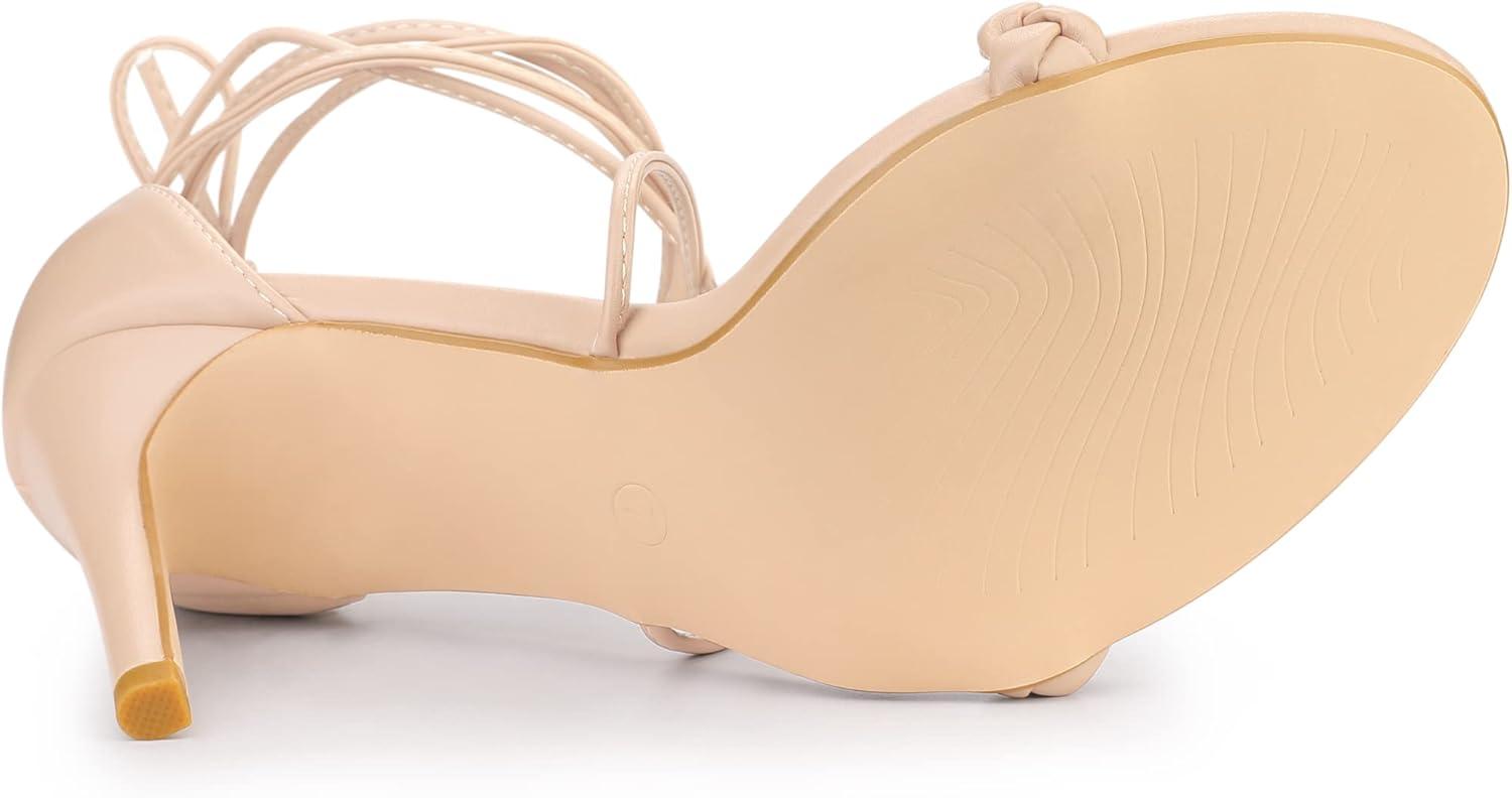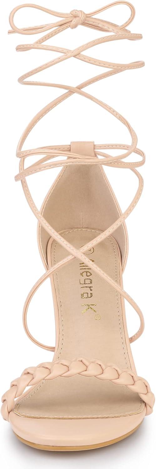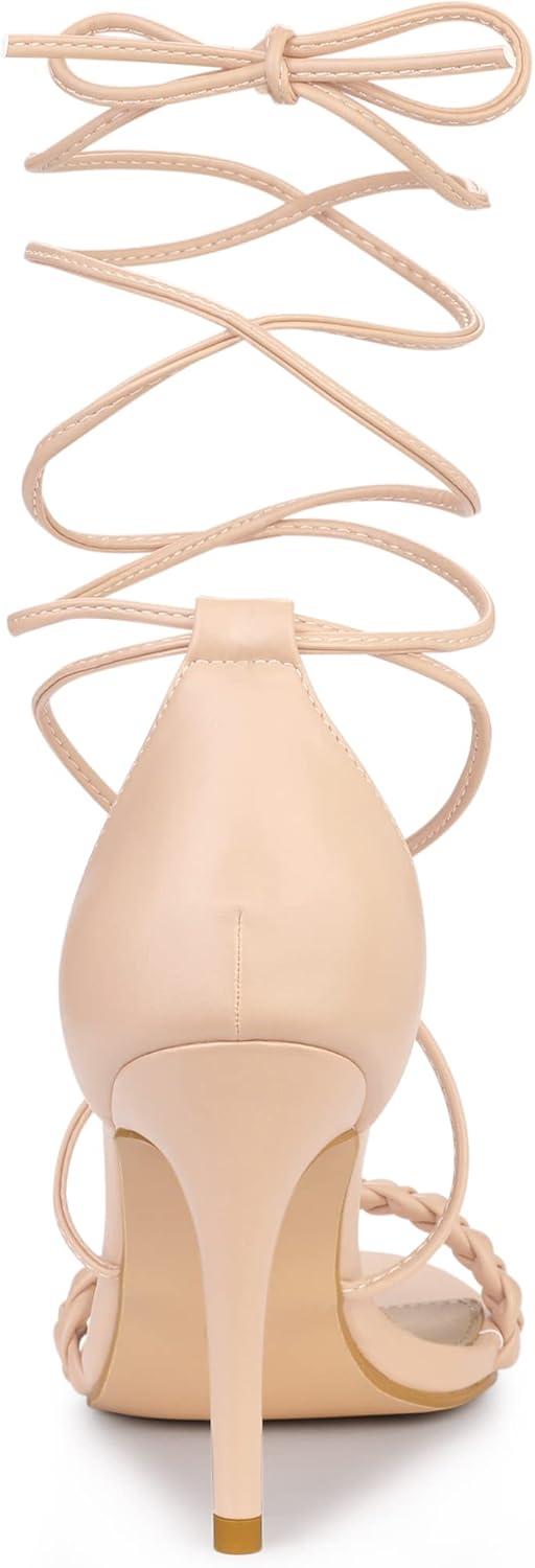 Allegra K Women’s Woven Strap Lace Up Strappy Stiletto Heel Sandals(Nude)