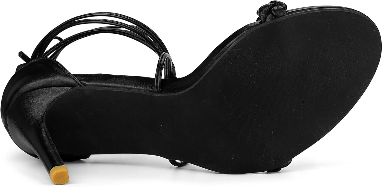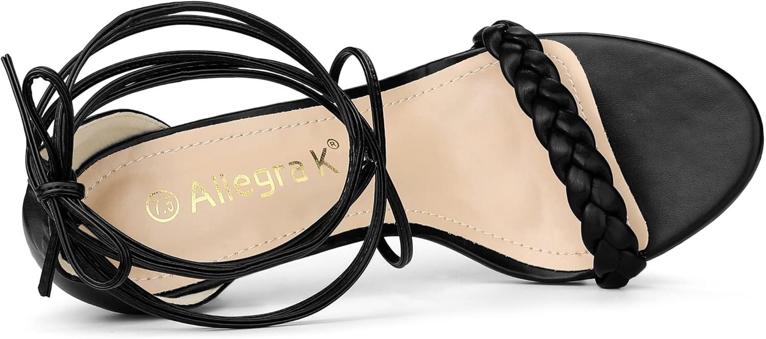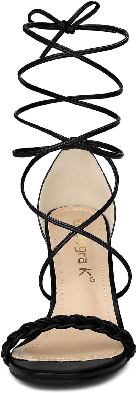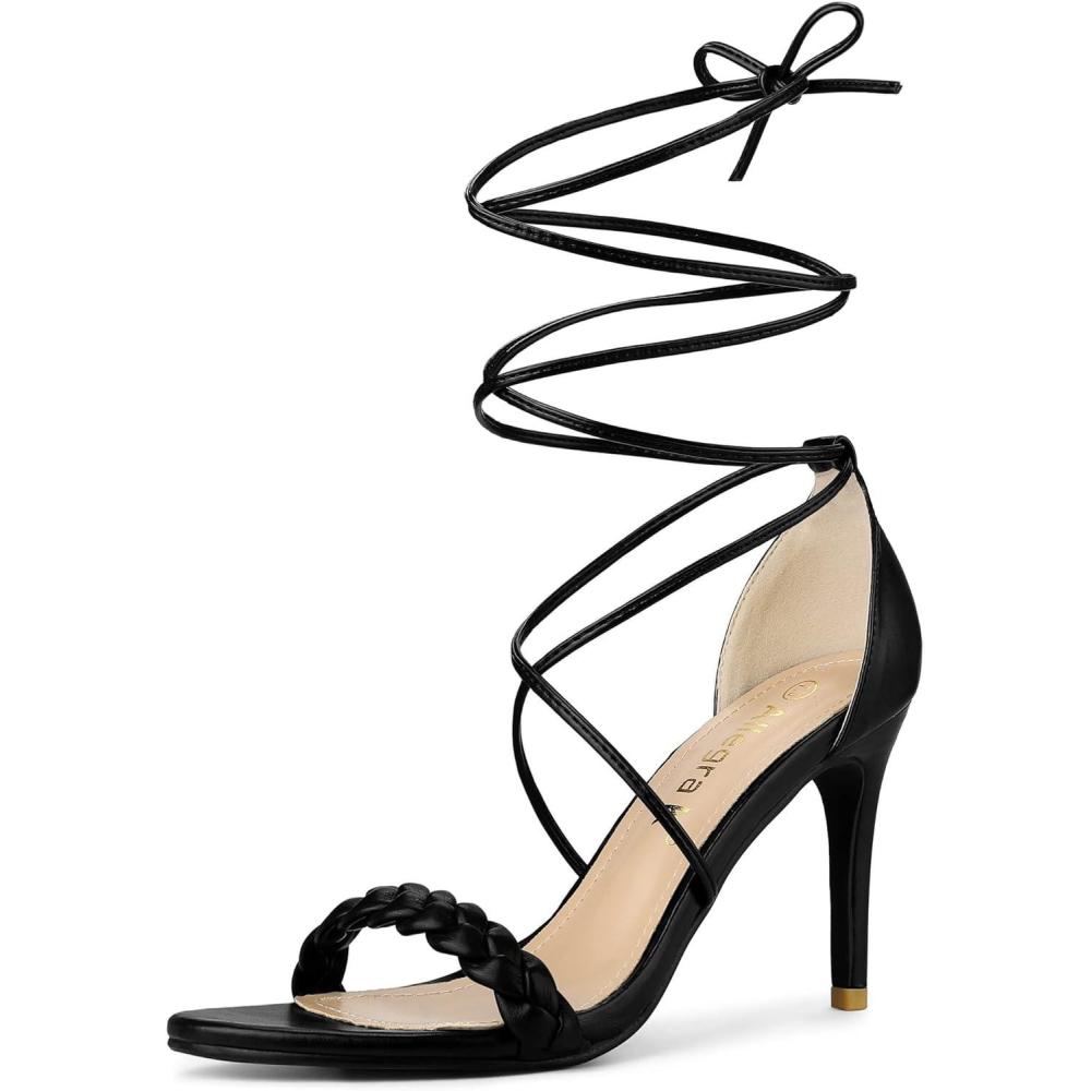 Allegra K Women’s Woven Strap Lace Up Strappy Stiletto Heel Sandals(Black)