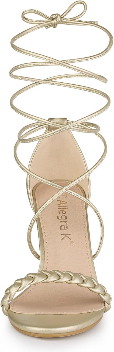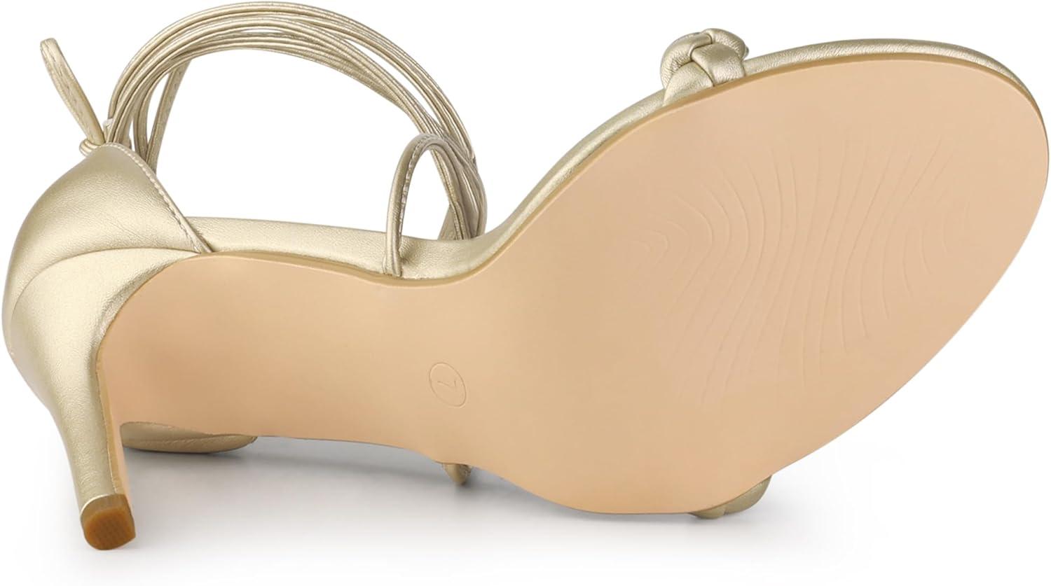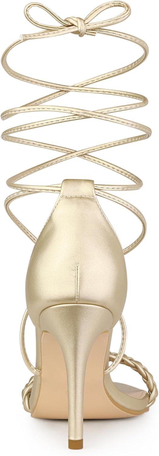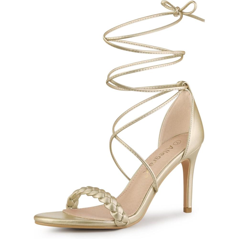 Allegra K Women’s Woven Strap Lace Up Strappy Stiletto Heel Sandals(Gold)