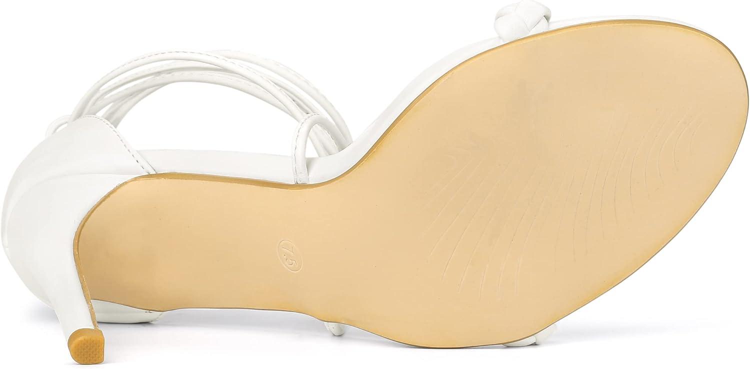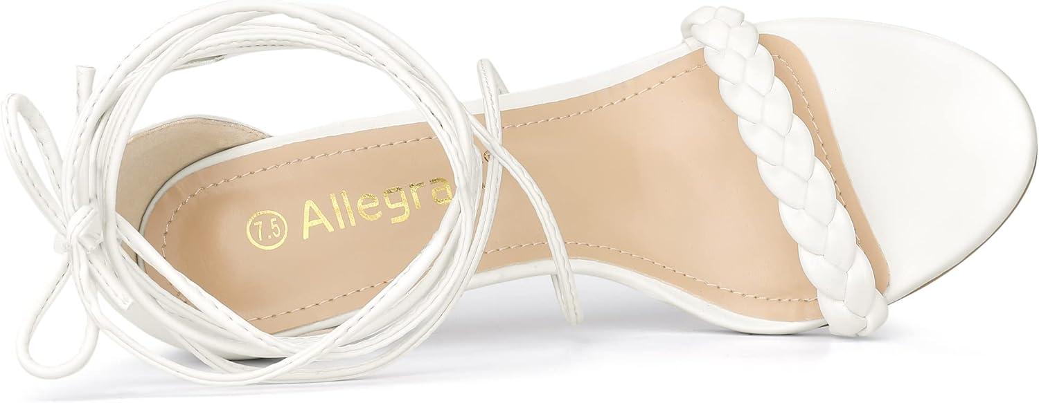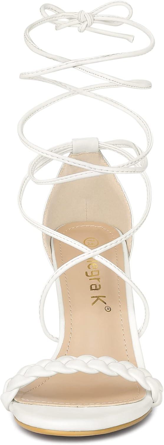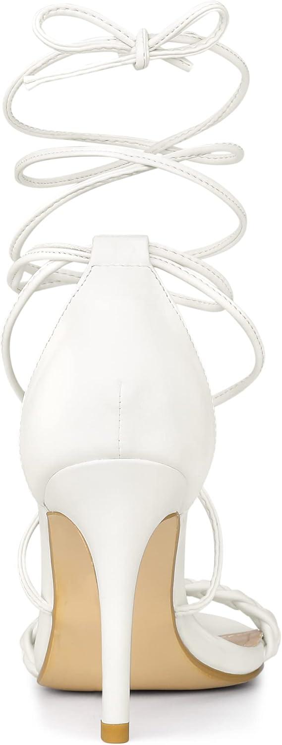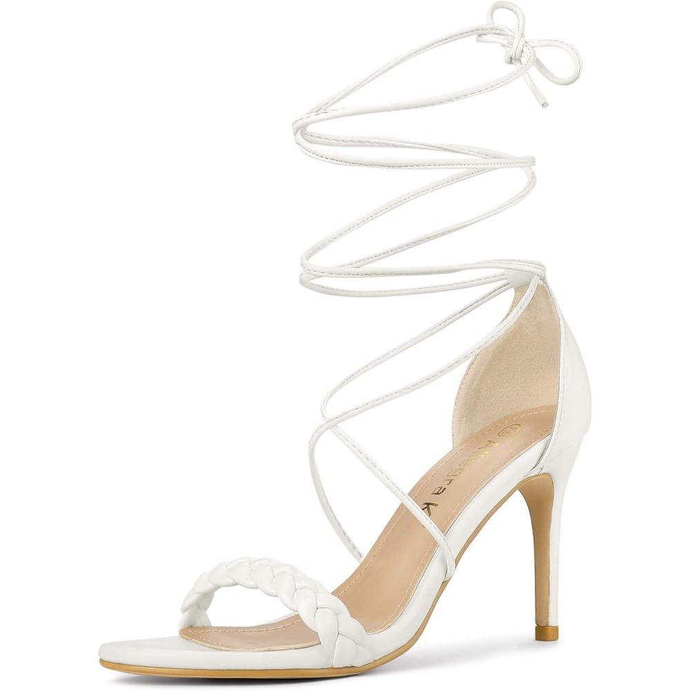 Allegra K Women’s Woven Strap Lace Up Strappy Stiletto Heel Sandals(White)