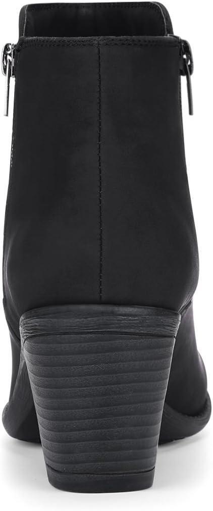Allegra K Women’s’s Low Chunky Heel Side Zipper Ankle Booties(Black)