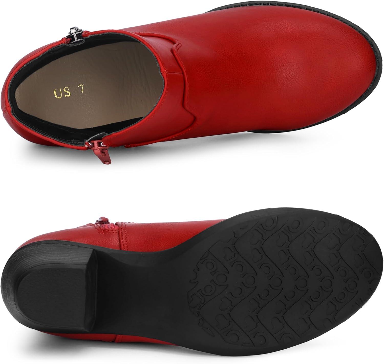 Allegra K Women’s’s Low Chunky Heel Side Zipper Ankle Booties(Red)