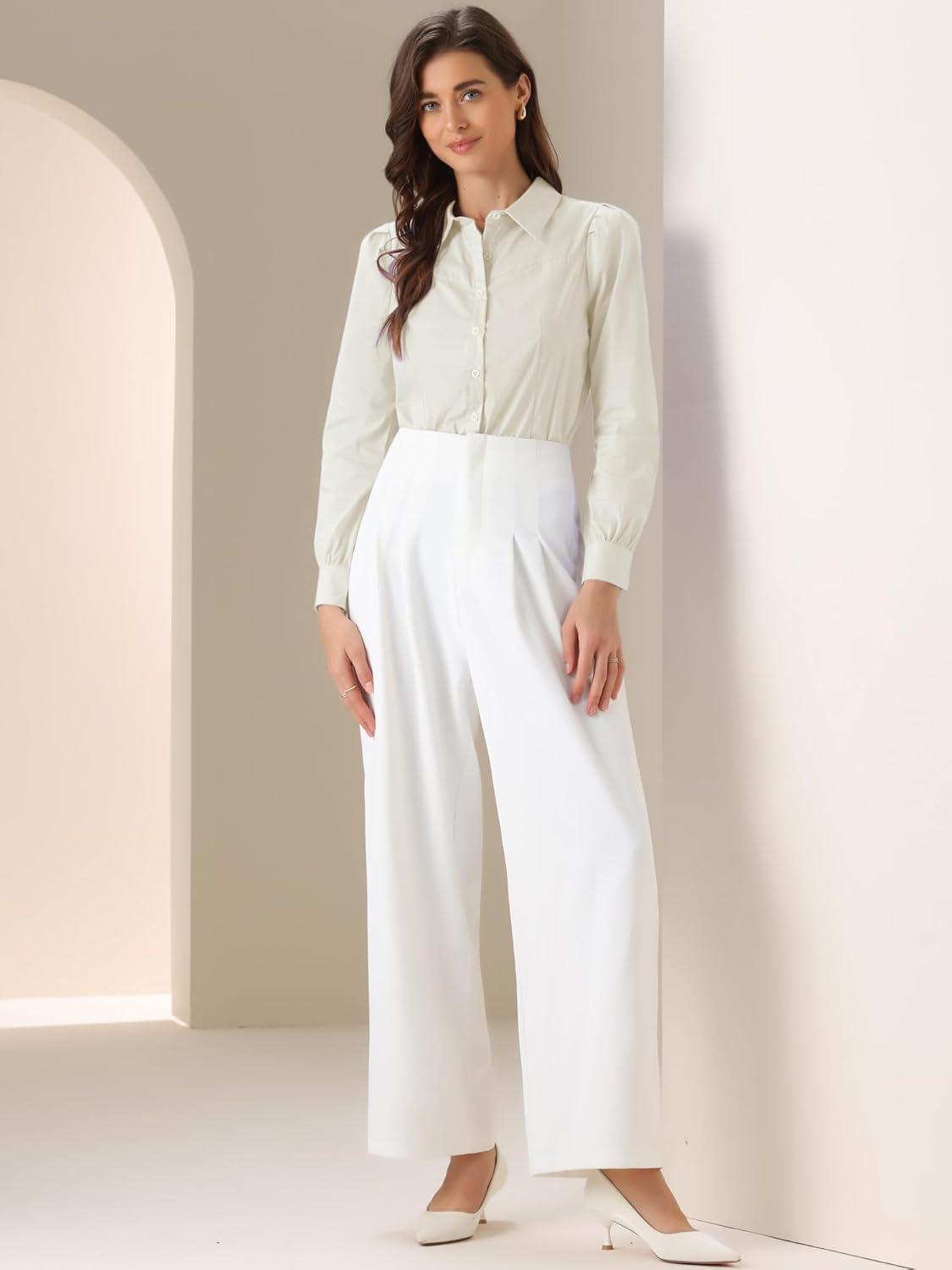 Allegra K Work Body Suits for Women Office Button Down Shirt Collared Long Sleeves Bodysuit Top(Beige)