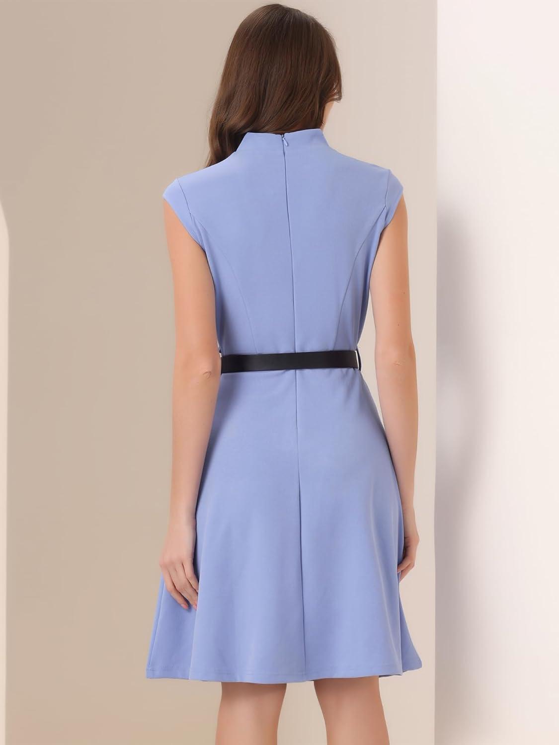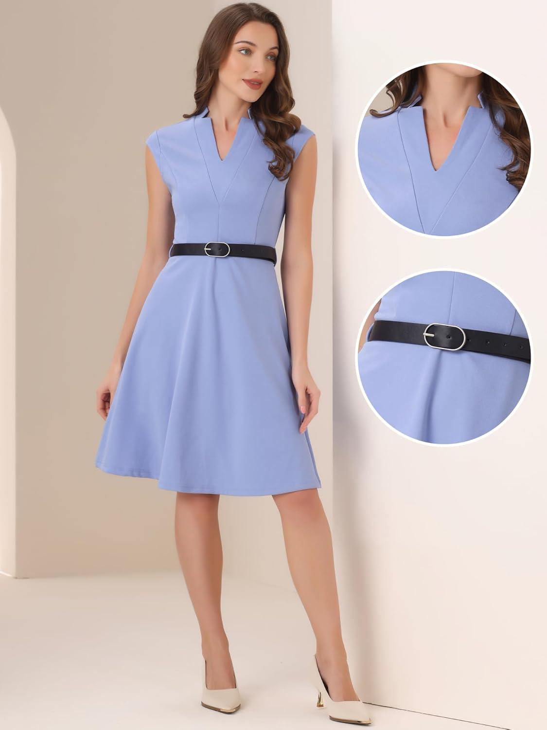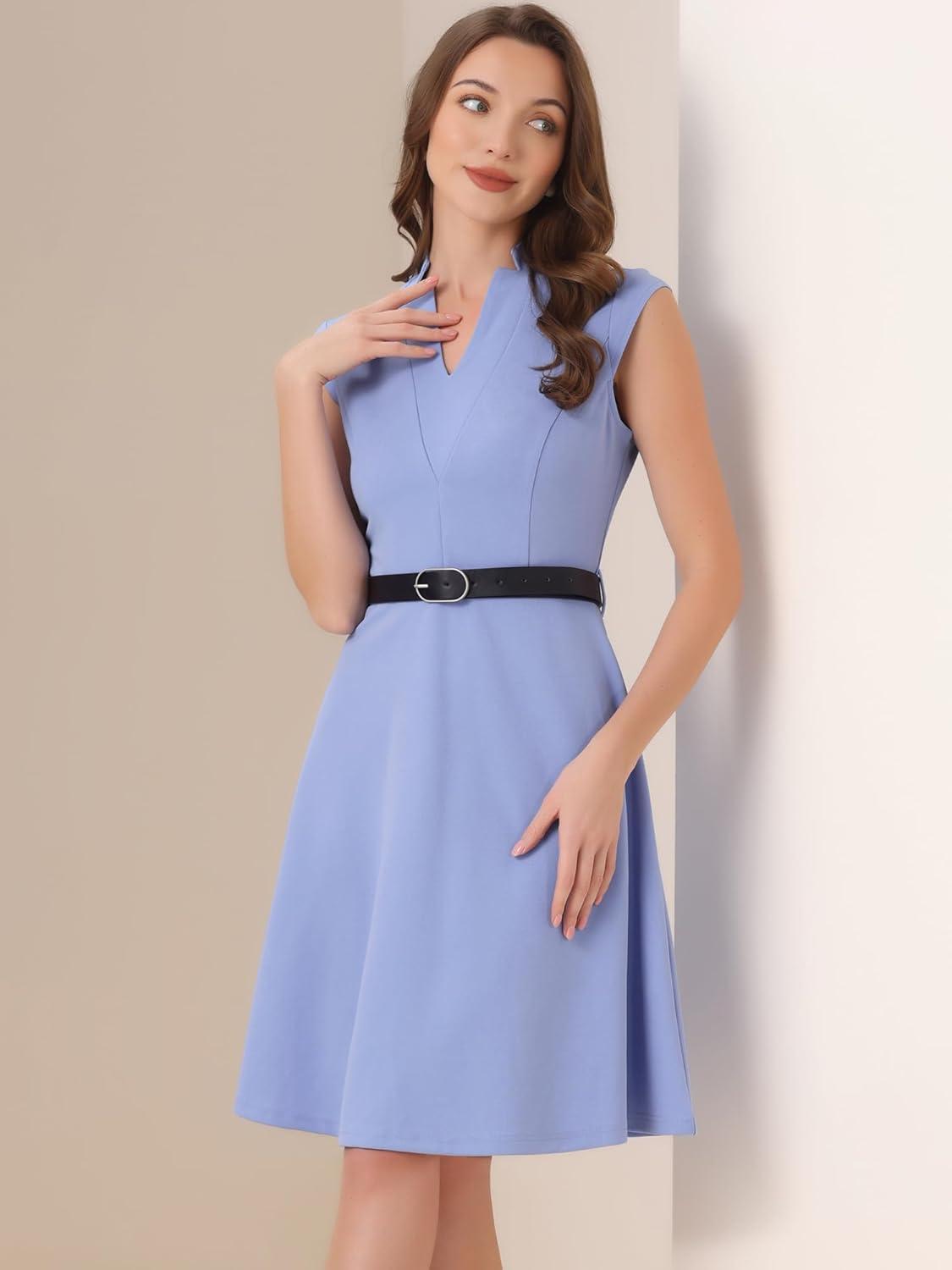 Allegra K Work Dress for Women's Fit and Flare Professional Spring 2025 Dresses(Grey Blue)