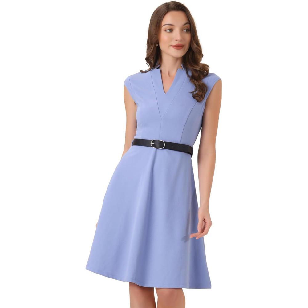 imageAllegra K Work Dress for Womens Fit and Flare Professional Spring 2025 DressesGrey Blue