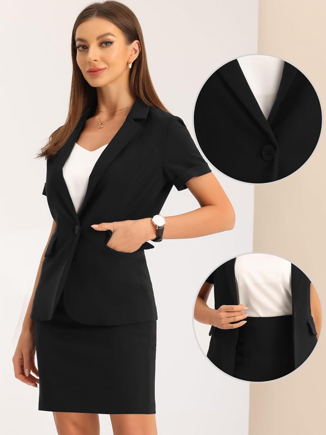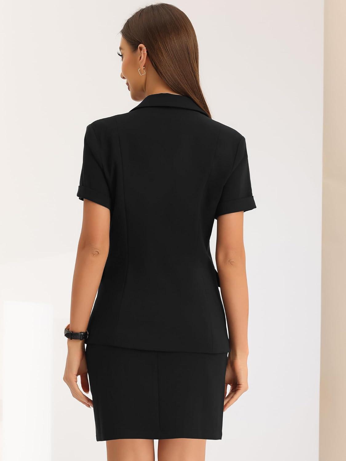 Allegra K Work Suit for Women’s Office Blazer Skirt Suit 2 Piece Set(Black)