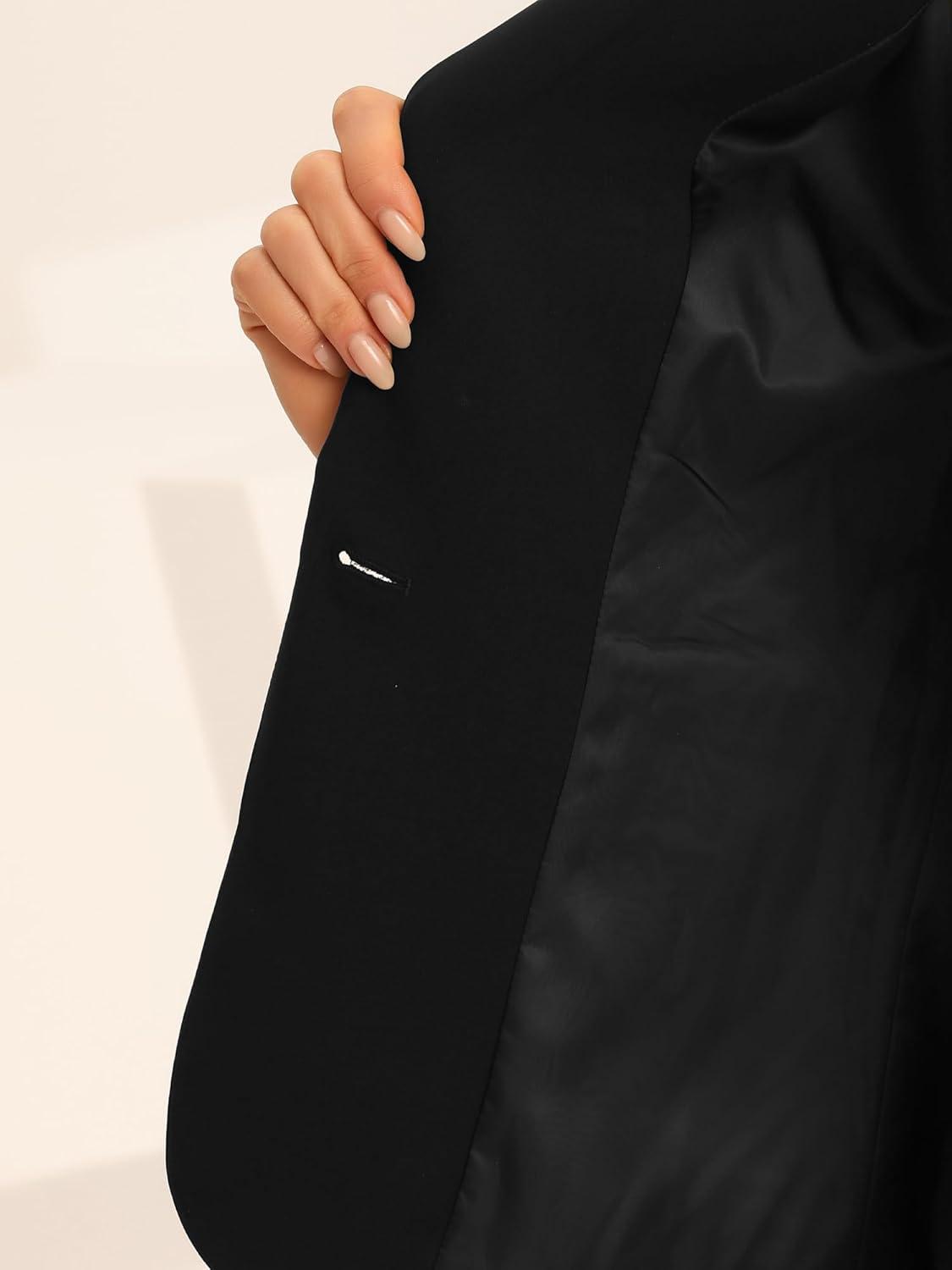 Allegra K 2 Piece Work Suit for Women’s Business Formal Double-Breasted Blazer and Pants Set(Black)