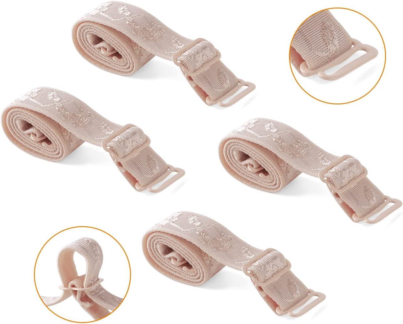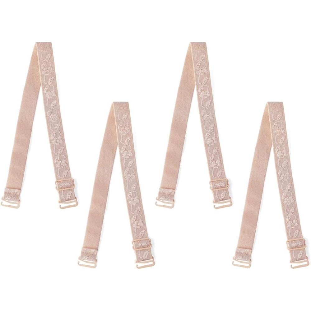 uxcell 2 Pair 10/12/15/18/20mm Width Stretchable Shoulder Bra Straps Adjustable Elastic Straps for Women(Skin Color-flower Pattern)