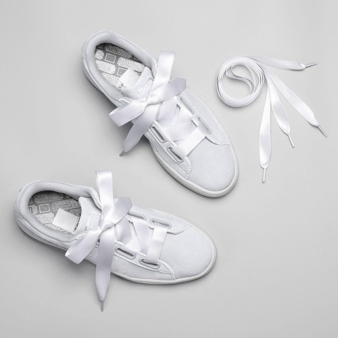 uxcell 2 Pairs Flat Ribbon Shoelaces Sneakers Shoestrings for Women DIY Decor(White)