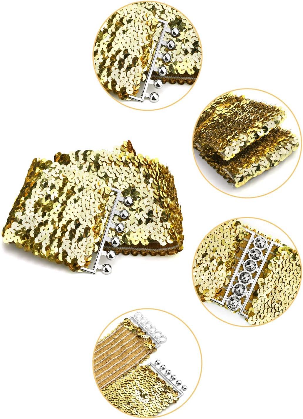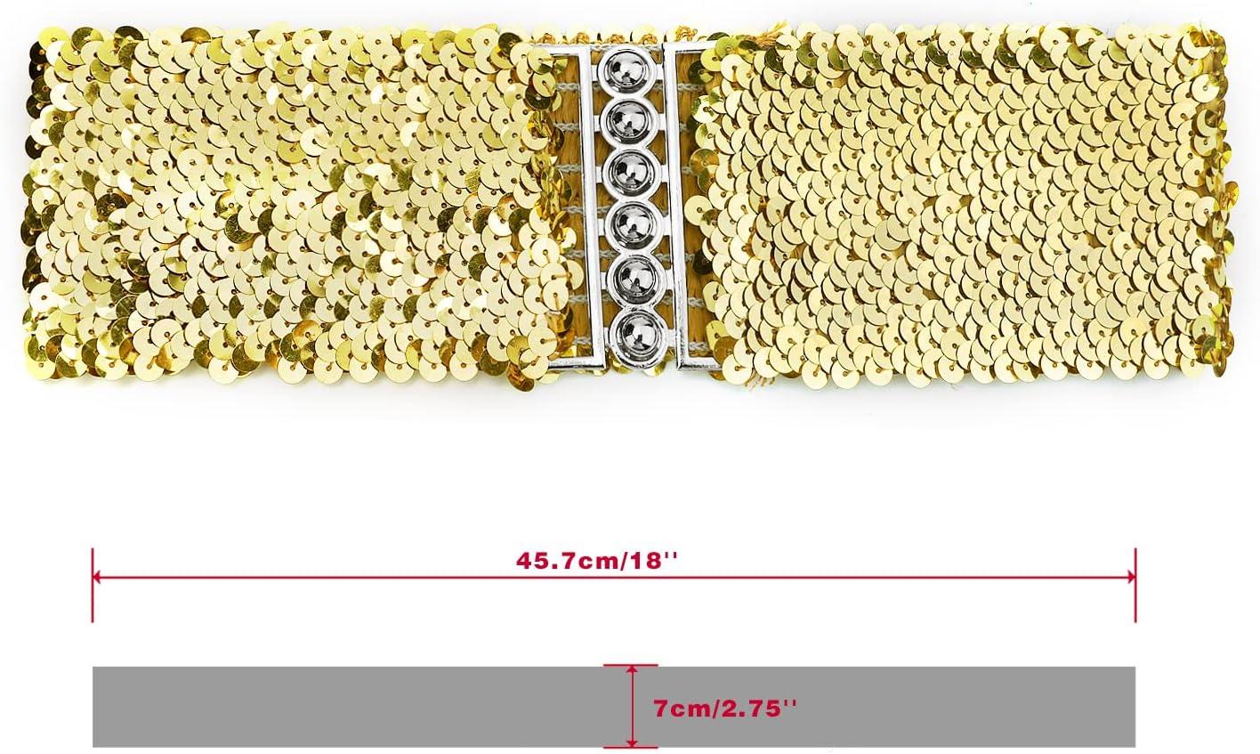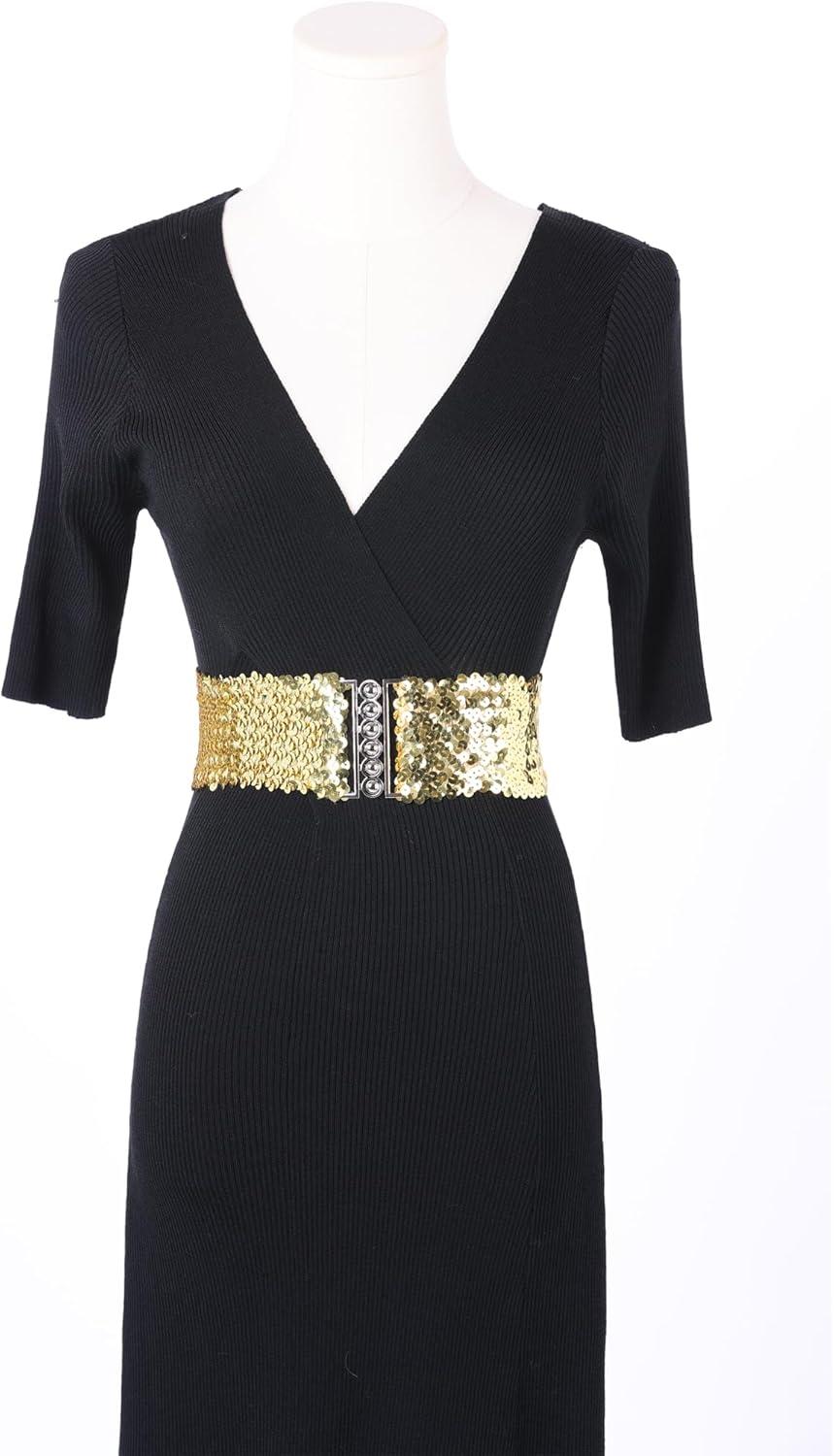 uxcell Ladies Sequins Decor Metal Interlocking Buckles Elastic Waist Belt(Gold)