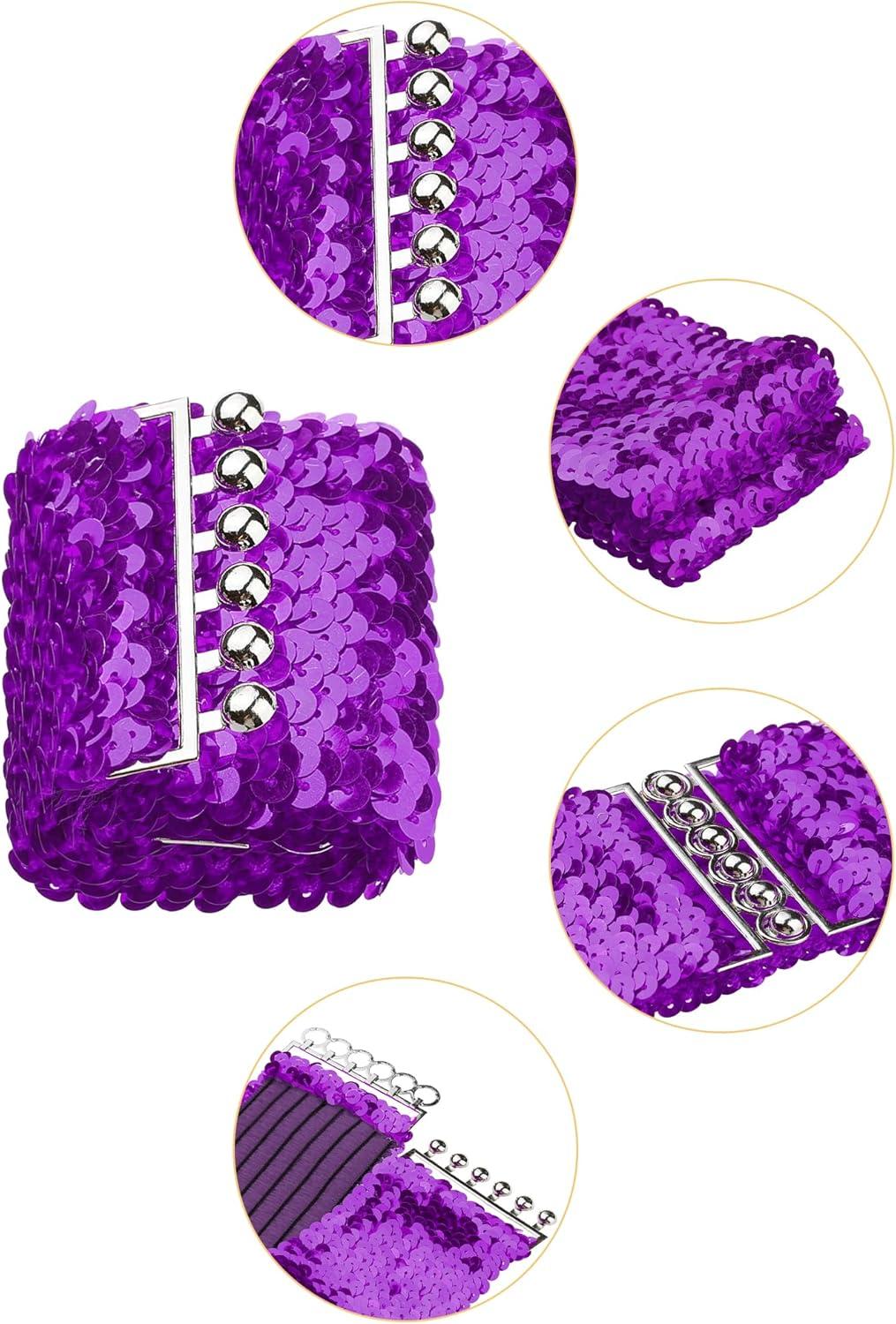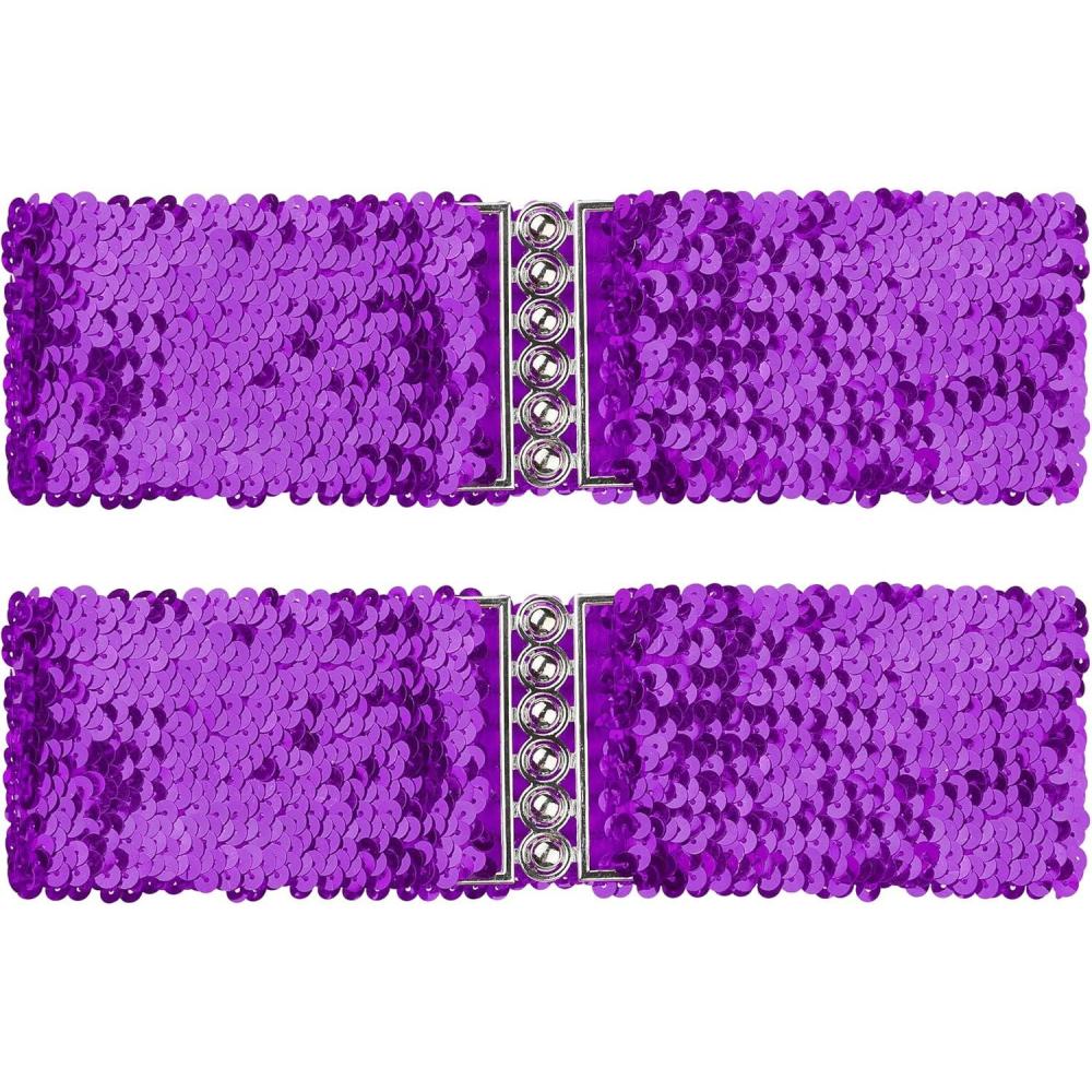 uxcell Ladies Sequins Decor Metal Interlooking Buckles Elastic Waist Belt(Purple & Purple)