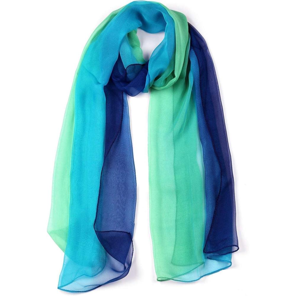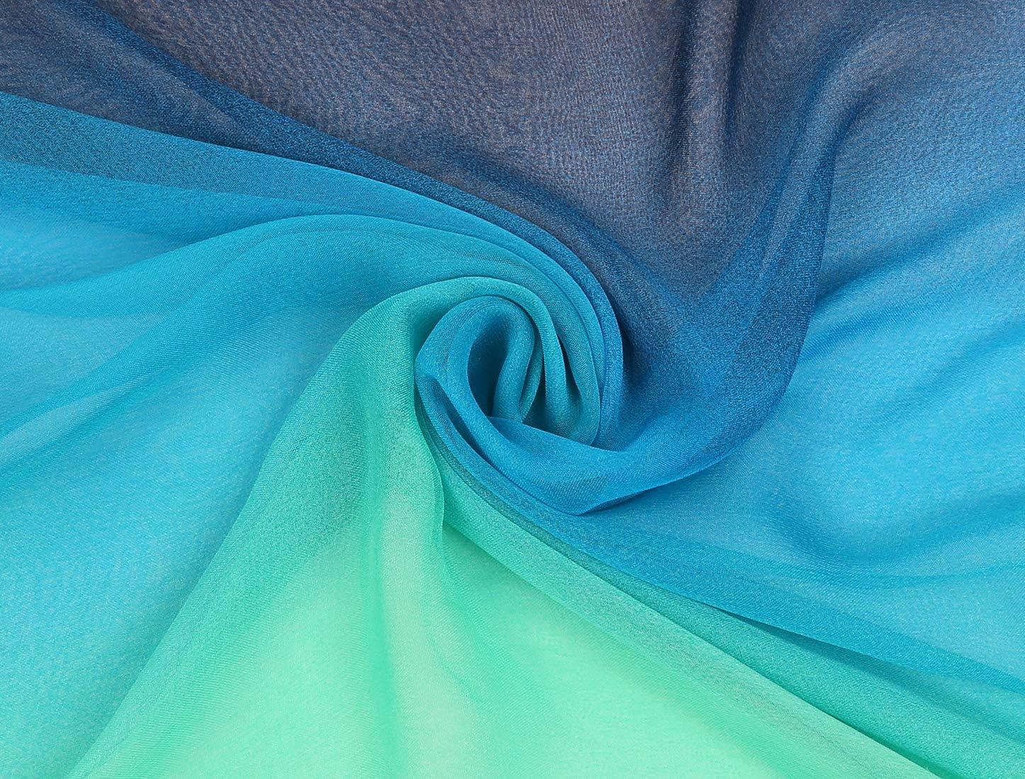 uxcell Long Chiffon Lightweight Sheer Wedding Scarf Silky Gradient Color Party Shawl Spring Summer Beach Wrap for Women(Blue Green)