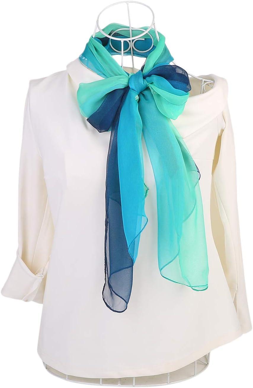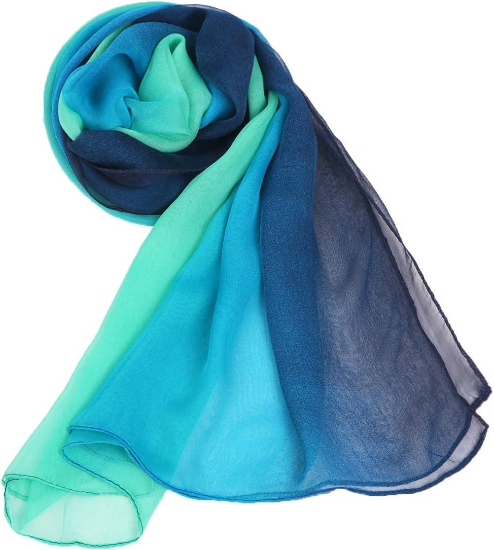 imageuxcell Long Chiffon Lightweight Sheer Wedding Scarf Silky Gradient Color Party Shawl Spring Summer Beach Wrap for WomenBlue Green