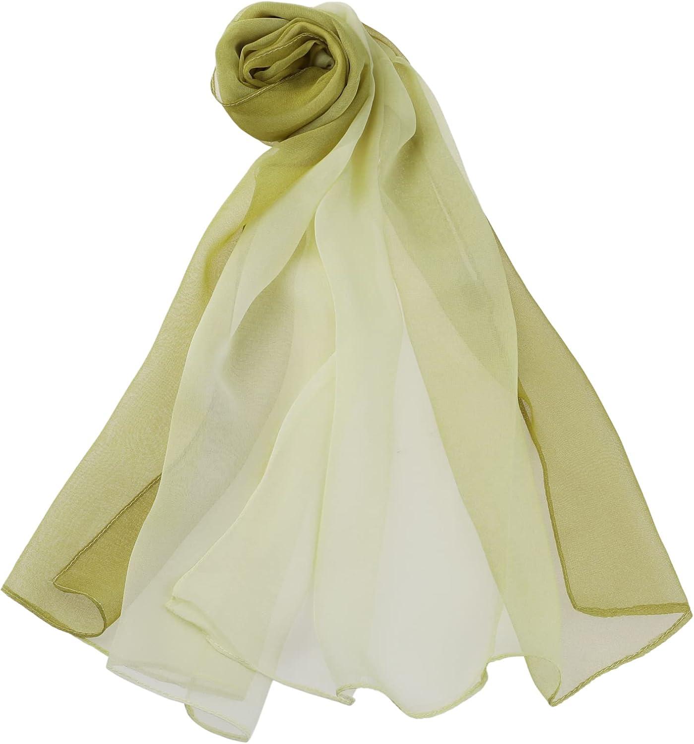 imageuxcell Long Chiffon Lightweight Sheer Wedding Scarf Silky Gradient Color Party Shawl Spring Summer Beach Wrap for WomenDark Light Olive Green