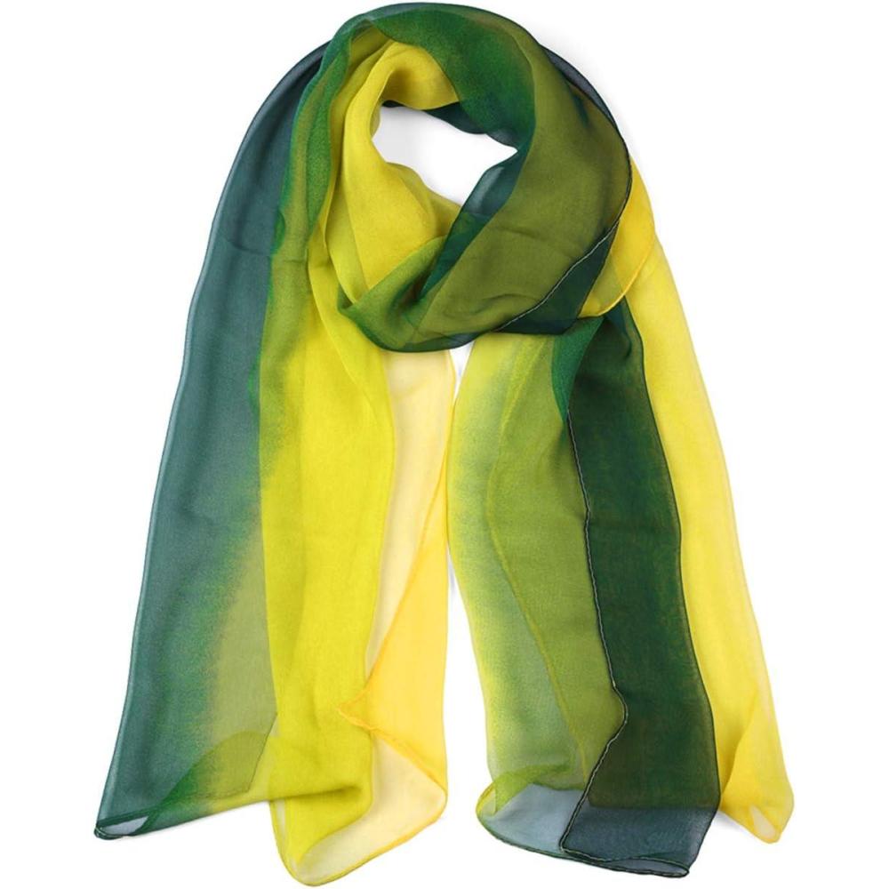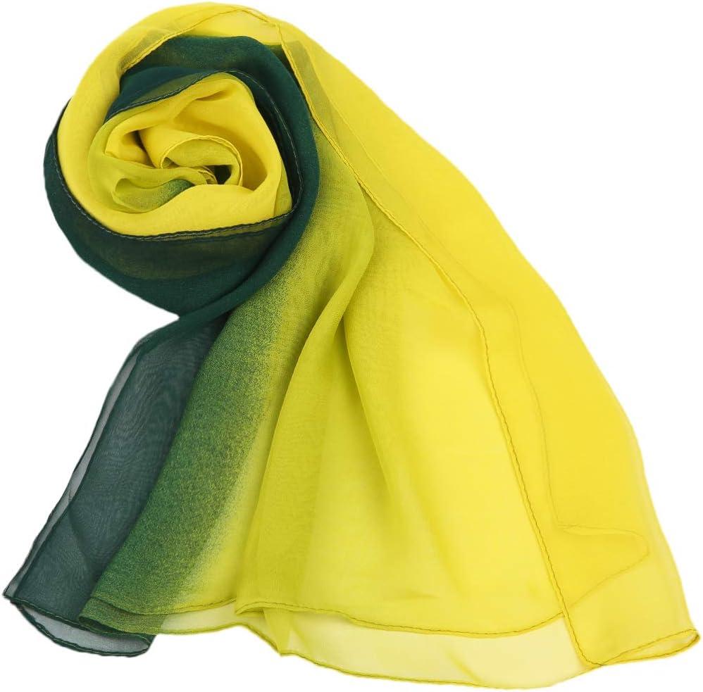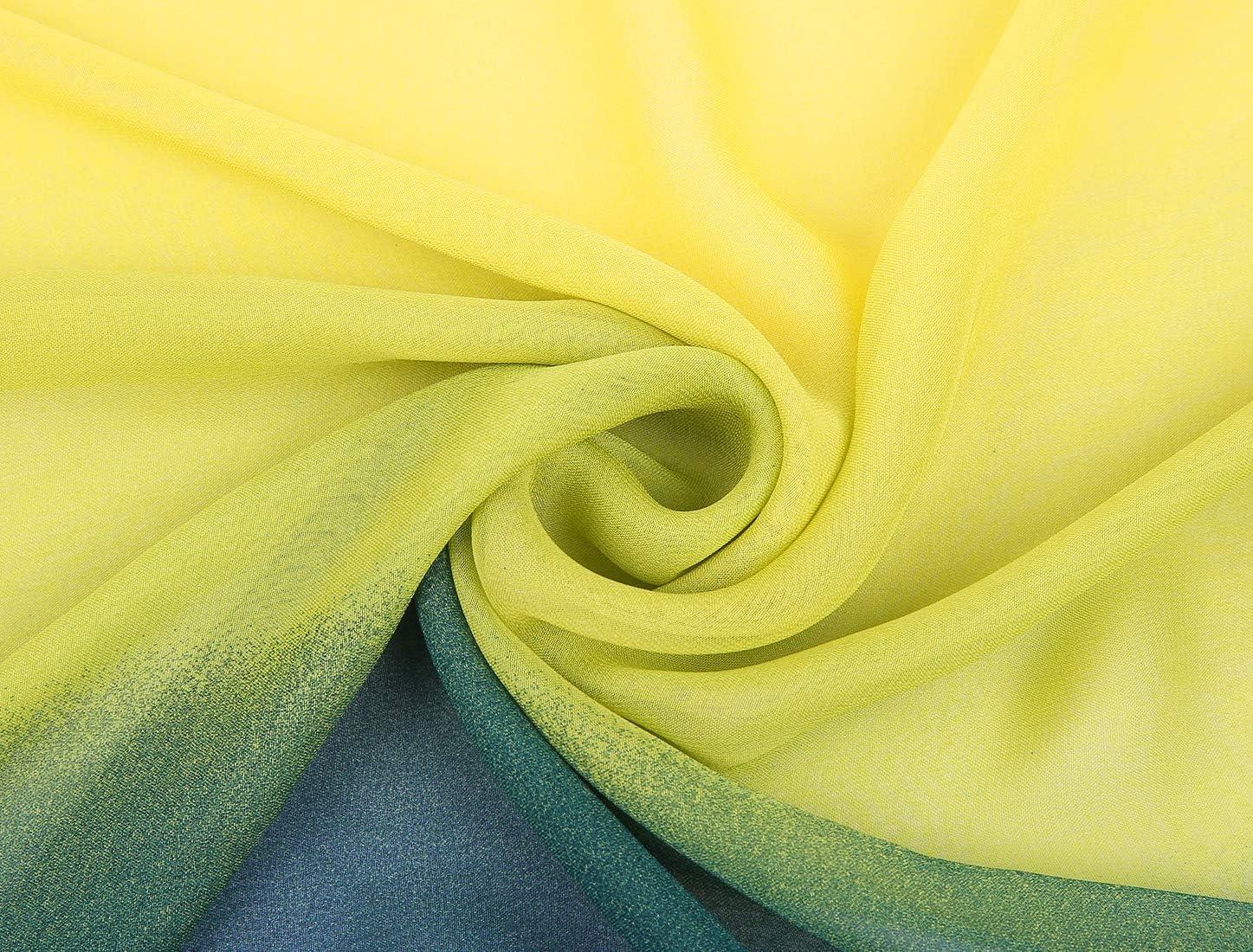imageuxcell Long Chiffon Lightweight Sheer Wedding Scarf Silky Gradient Color Party Shawl Spring Summer Beach Wrap for WomenGreen Yellow Purple
