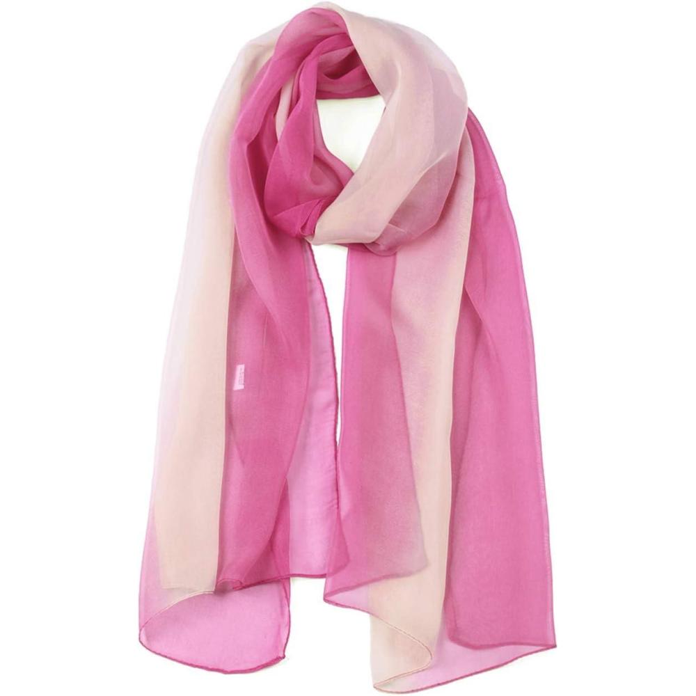 imageuxcell Long Chiffon Lightweight Sheer Wedding Scarf Silky Gradient Color Party Shawl Spring Summer Beach Wrap for WomenPale Pink Fuchsia