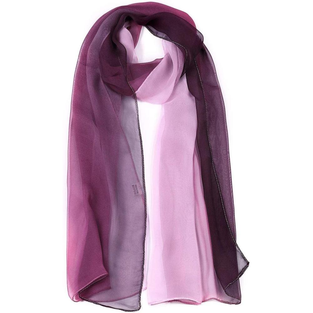 imageuxcell Long Chiffon Lightweight Sheer Wedding Scarf Silky Gradient Color Party Shawl Spring Summer Beach Wrap for WomenPurple