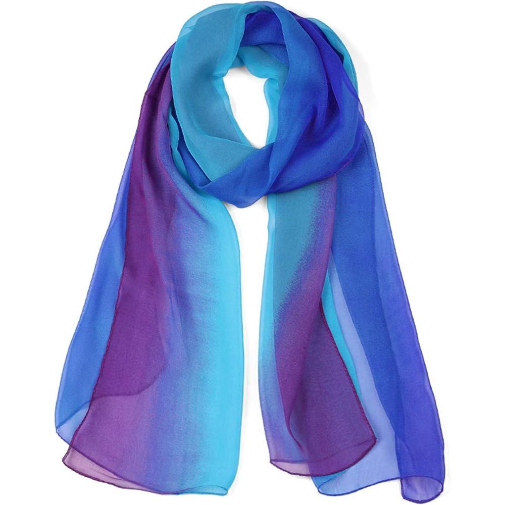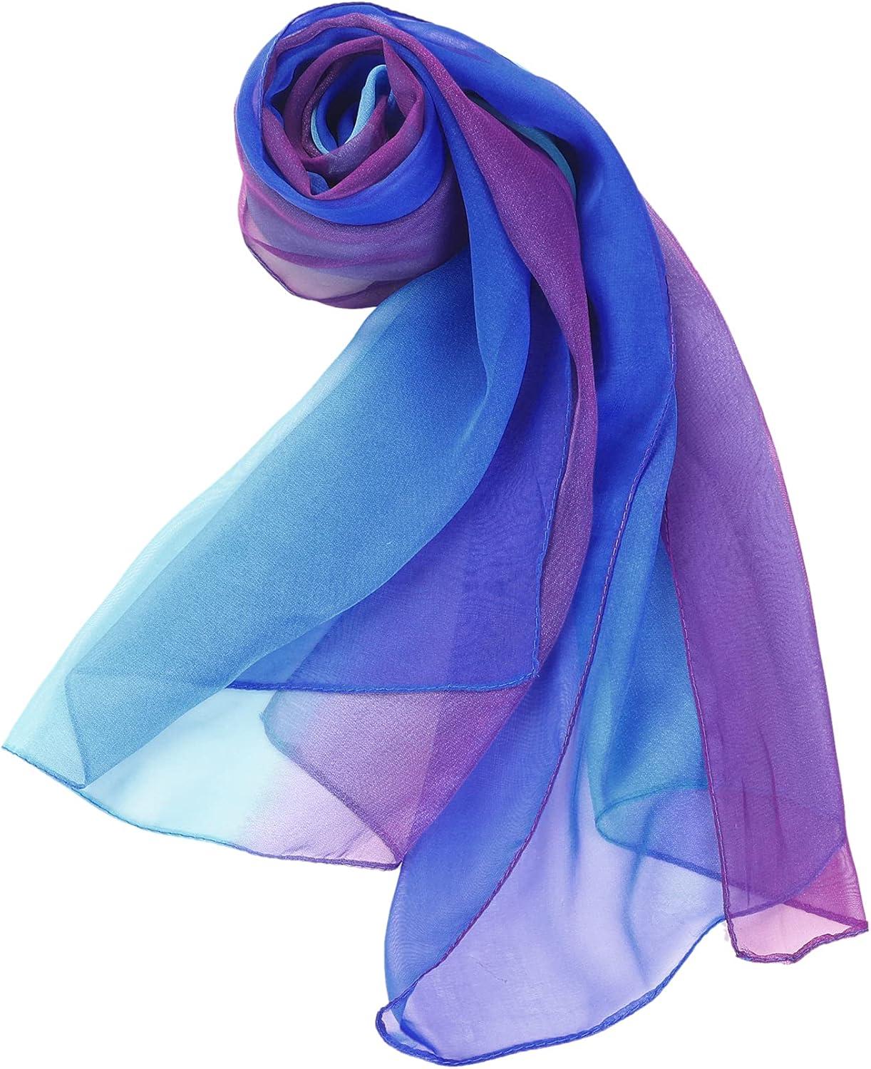 imageuxcell Long Chiffon Lightweight Sheer Wedding Scarf Silky Gradient Color Party Shawl Spring Summer Beach Wrap for WomenRoyal Blue