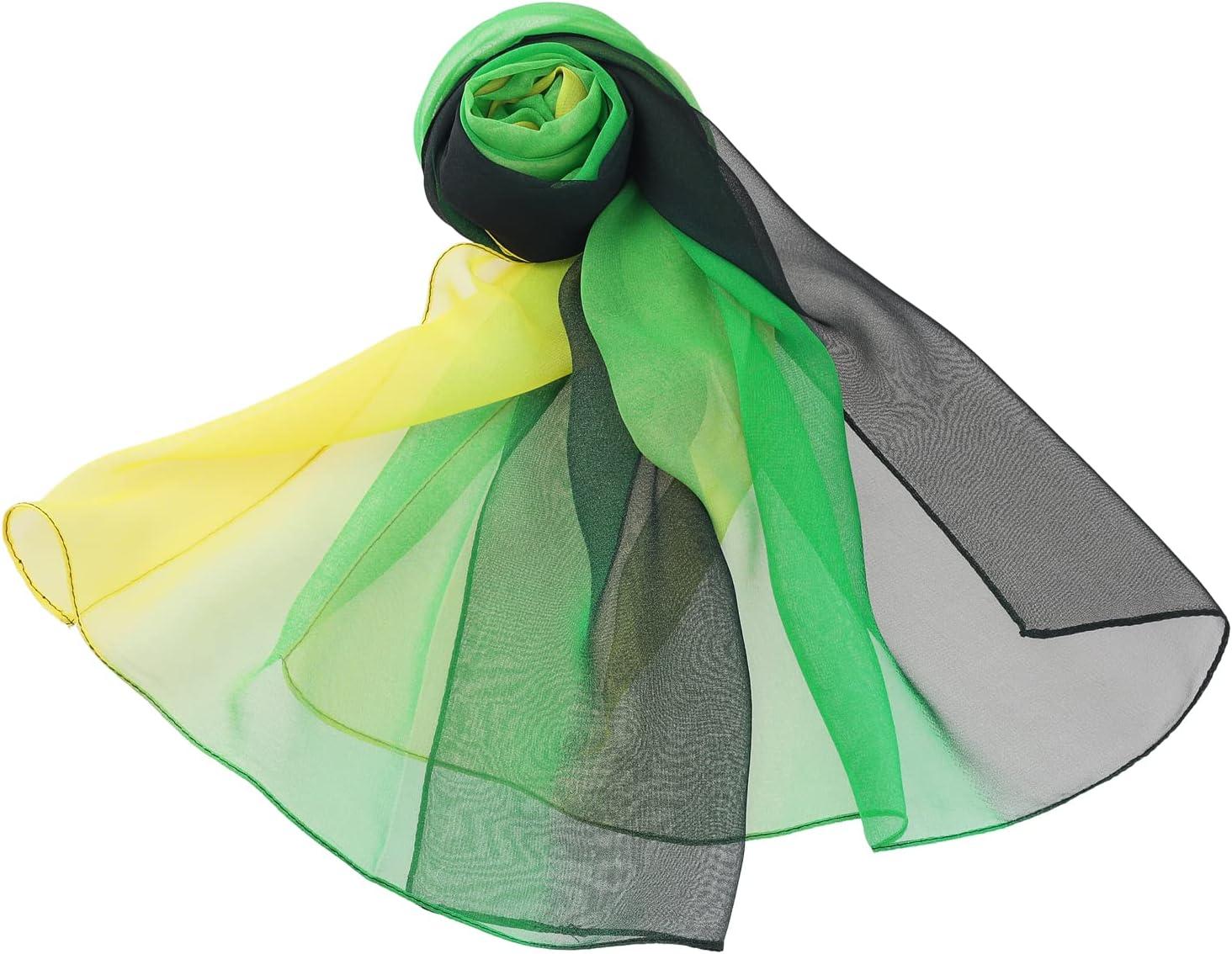 imageuxcell Long Chiffon Lightweight Sheer Wedding Scarf Silky Gradient Color Party Shawl Spring Summer Beach Wrap for WomenYellow Green Black