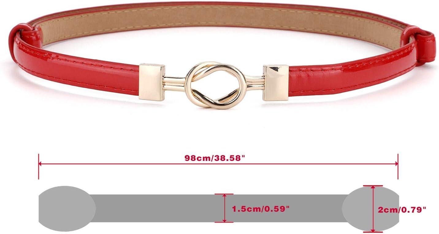 imageuxcell Metal Buckle Adjustable Thin High Waist Belt for WomenRedround Buckle