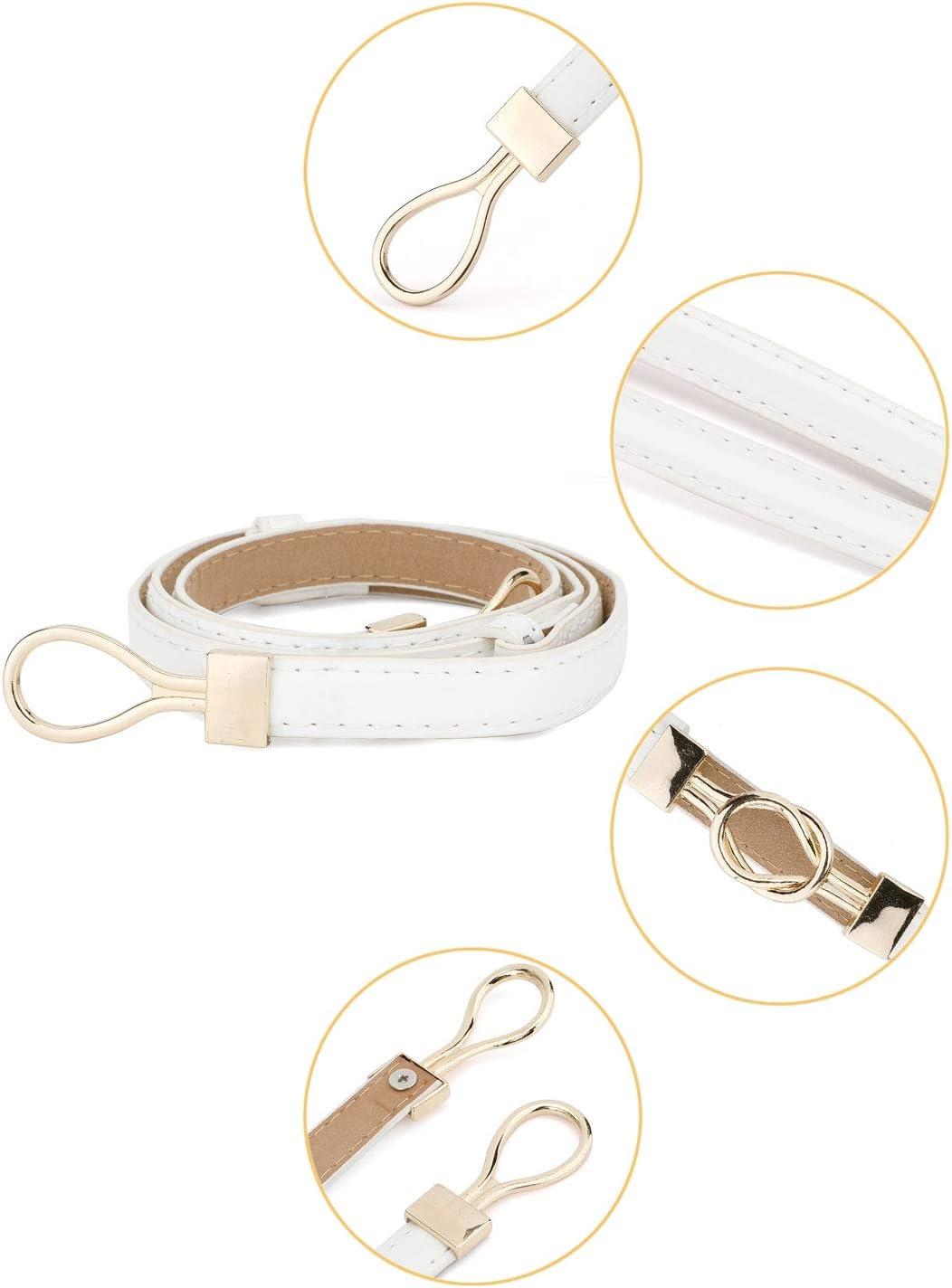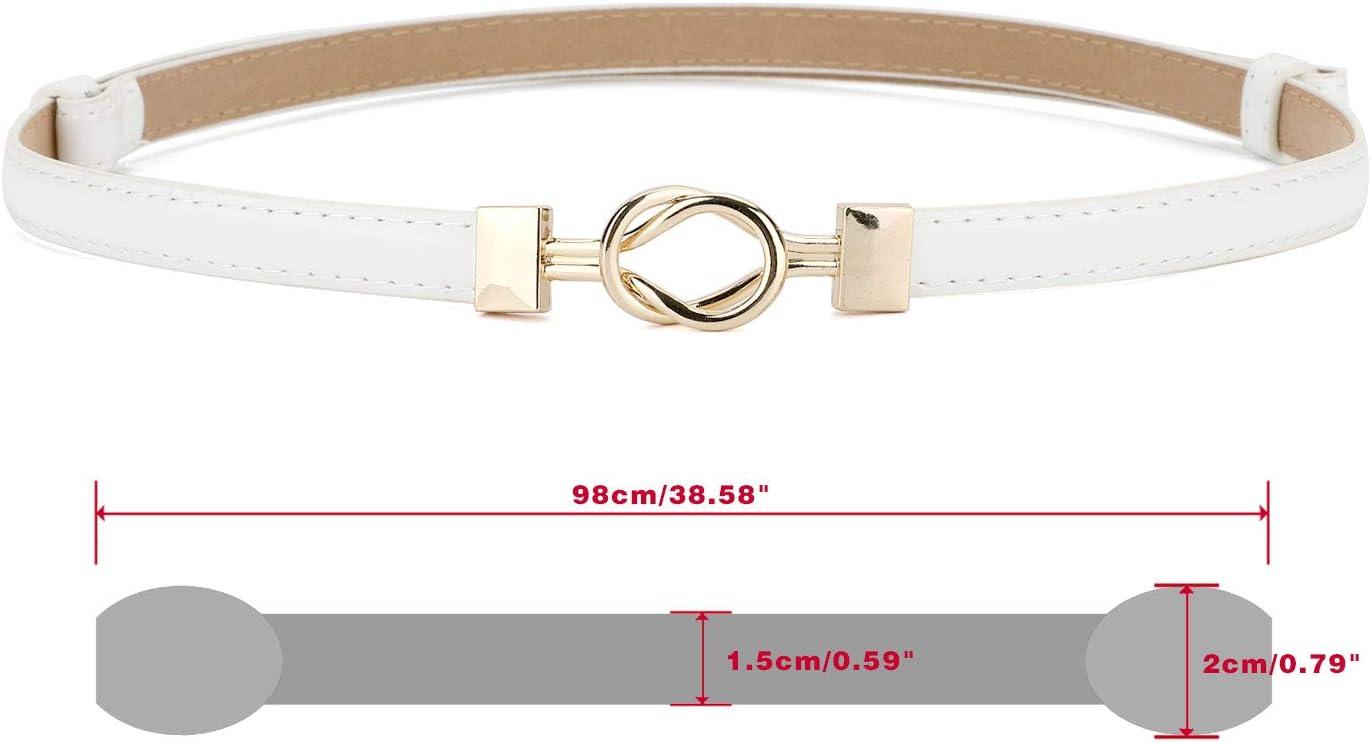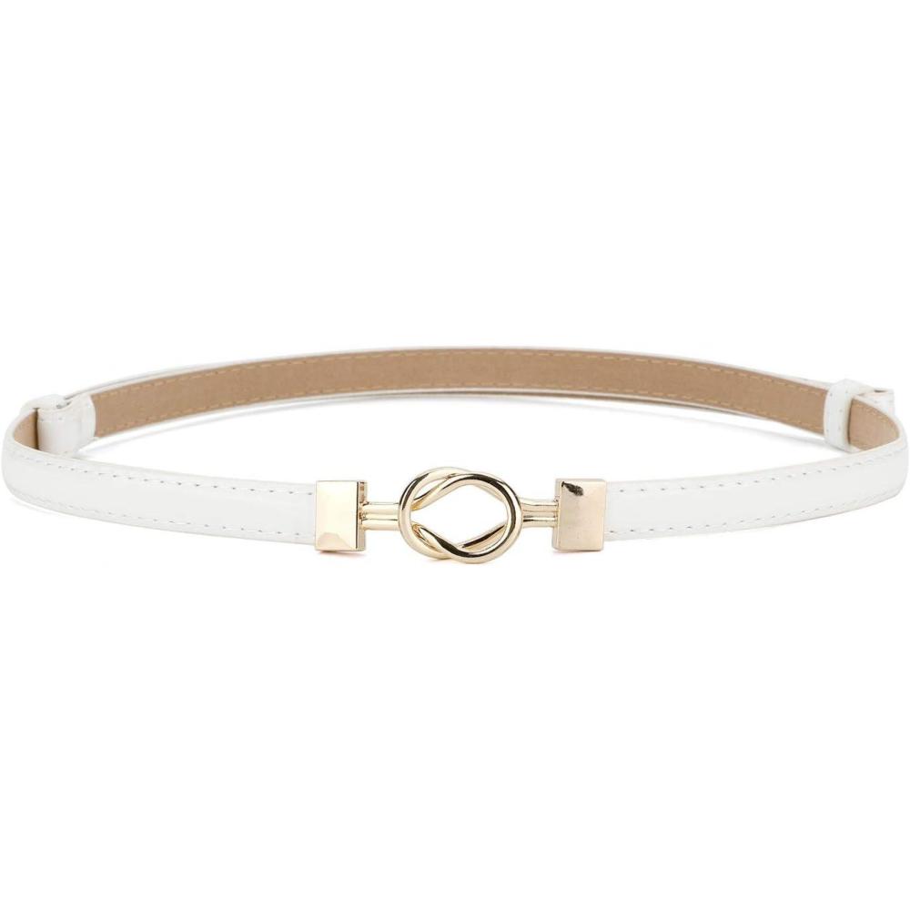 imageuxcell Metal Buckle Adjustable Thin High Waist Belt for WomenWhiteround Buckle