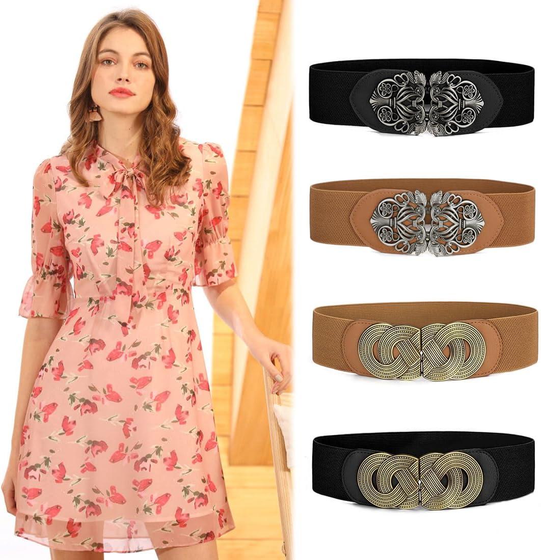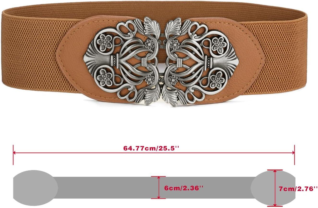 imageuxcell Retro Knot Woven Metal Interlocking Buckle Elastic Waist Cinch Belt BandFloral Bucklebrown Bandblack Buckle