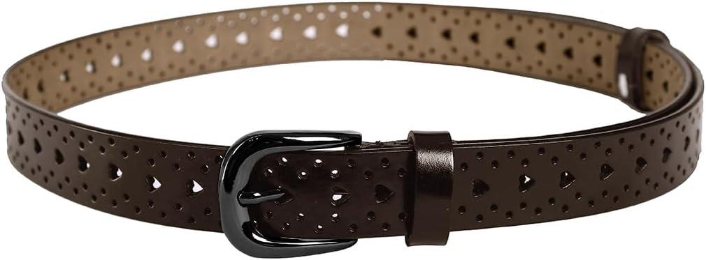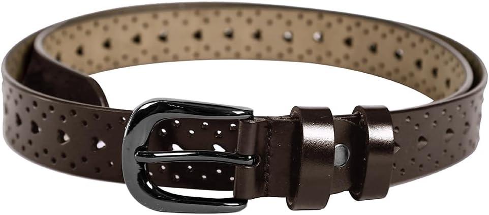 uxcell Women Carved Multi-hole Hollow Alloy Pin Buckle Leather Belt(Brown-heart)