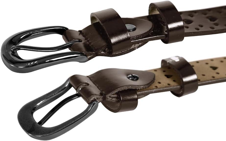 imageuxcell Women Carved Multihole Hollow Alloy Pin Buckle Leather BeltBrownstars