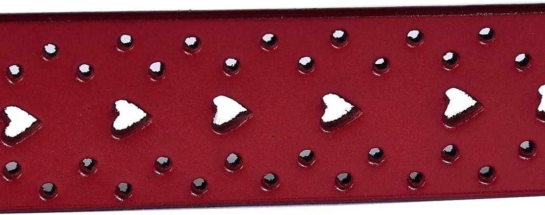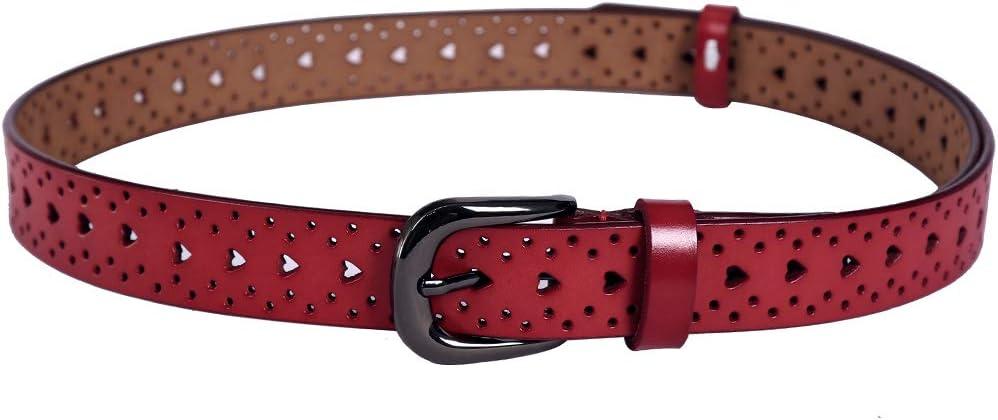 uxcell Women Carved Multi-hole Hollow Alloy Pin Buckle Leather Belt(Burgundy-heart)